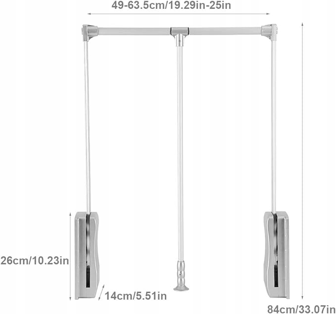 [Увеличение места для хранения вещей]: для шкафа с относительно большой высотой с помощью этой регулируемой штанги для одежды вы можете в полной мере использовать высоту, которой мы не можем достичь, дать вам больше места, чтобы повесить одежду и поддерживать порядок в шкафу, подъемная штанга для гардероба.