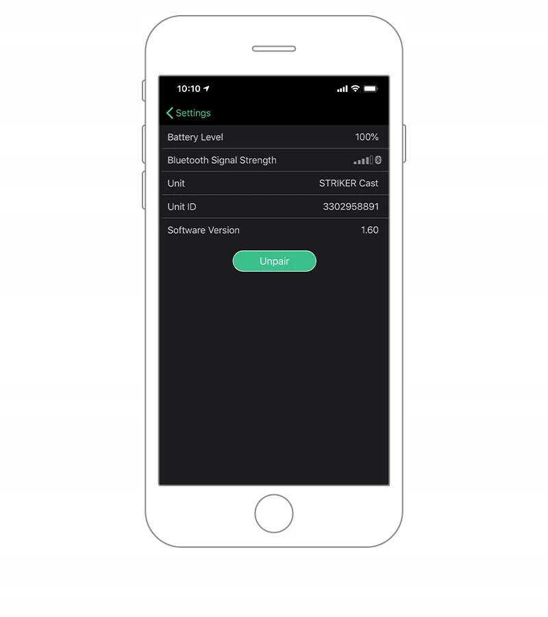 Скачайте бесплатное приложение для смартфонов Apple или Android. Выполните сопряжение вашего устройства с сонаром STRIKER. Сходите на рыбалку.