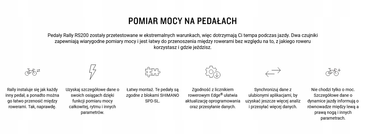 Rally прошла строгие испытания. Благодаря превосходному дизайну с датчиками, расположенными внутри, эти тонкие педали устанавливаются так же, как и любые другие. Более того, их легко переносить с одного велосипеда на другой.