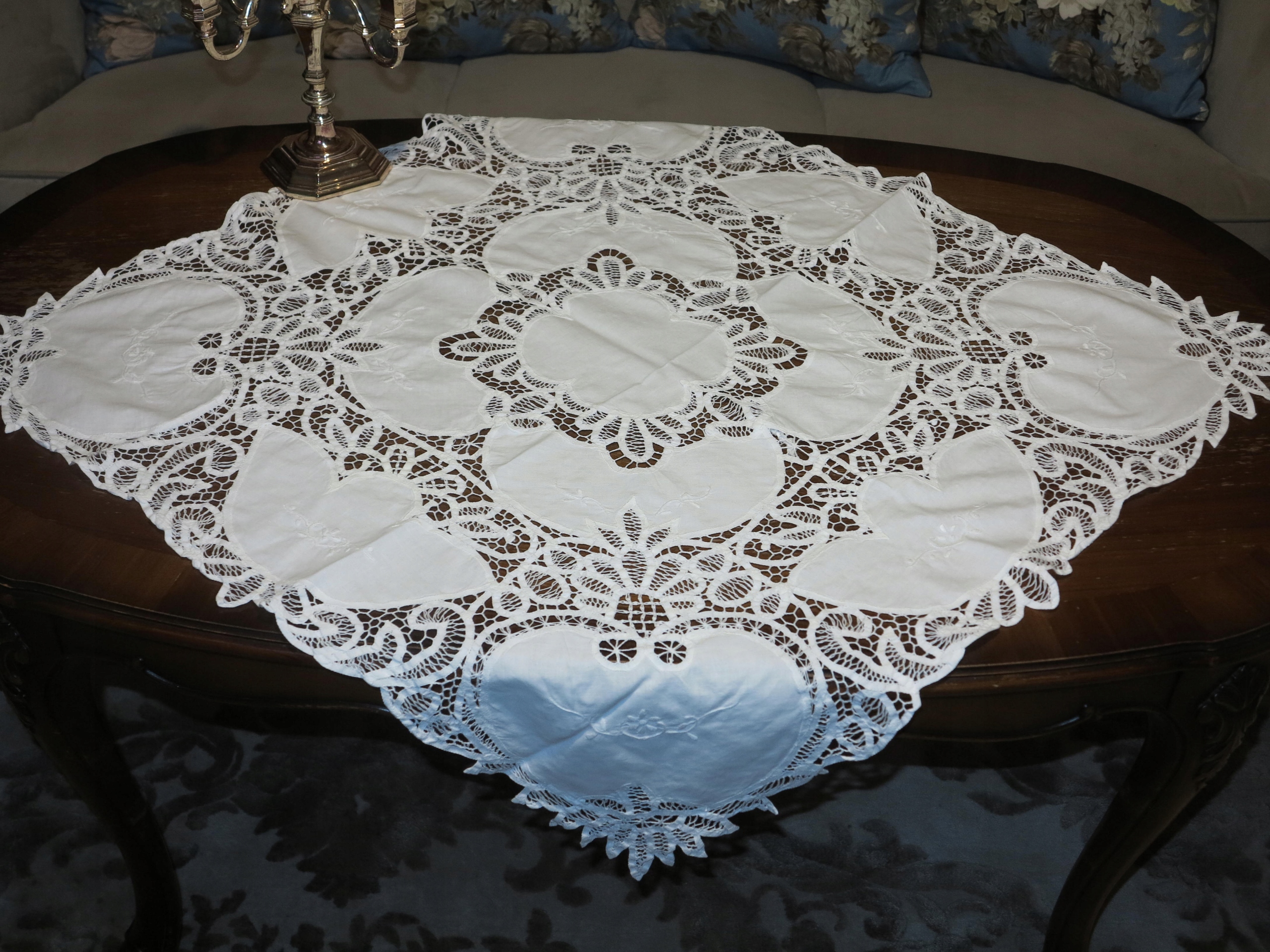 Предмет аукциона – красивая, чисто хлопчатобумажная скатерть с большим количеством брюссельского кружева и нежной вышивкой. Скатерть белоснежная. Имеет размеры: 82/80см. Скатерть б/у, в отличном состоянии. Рекомендую
