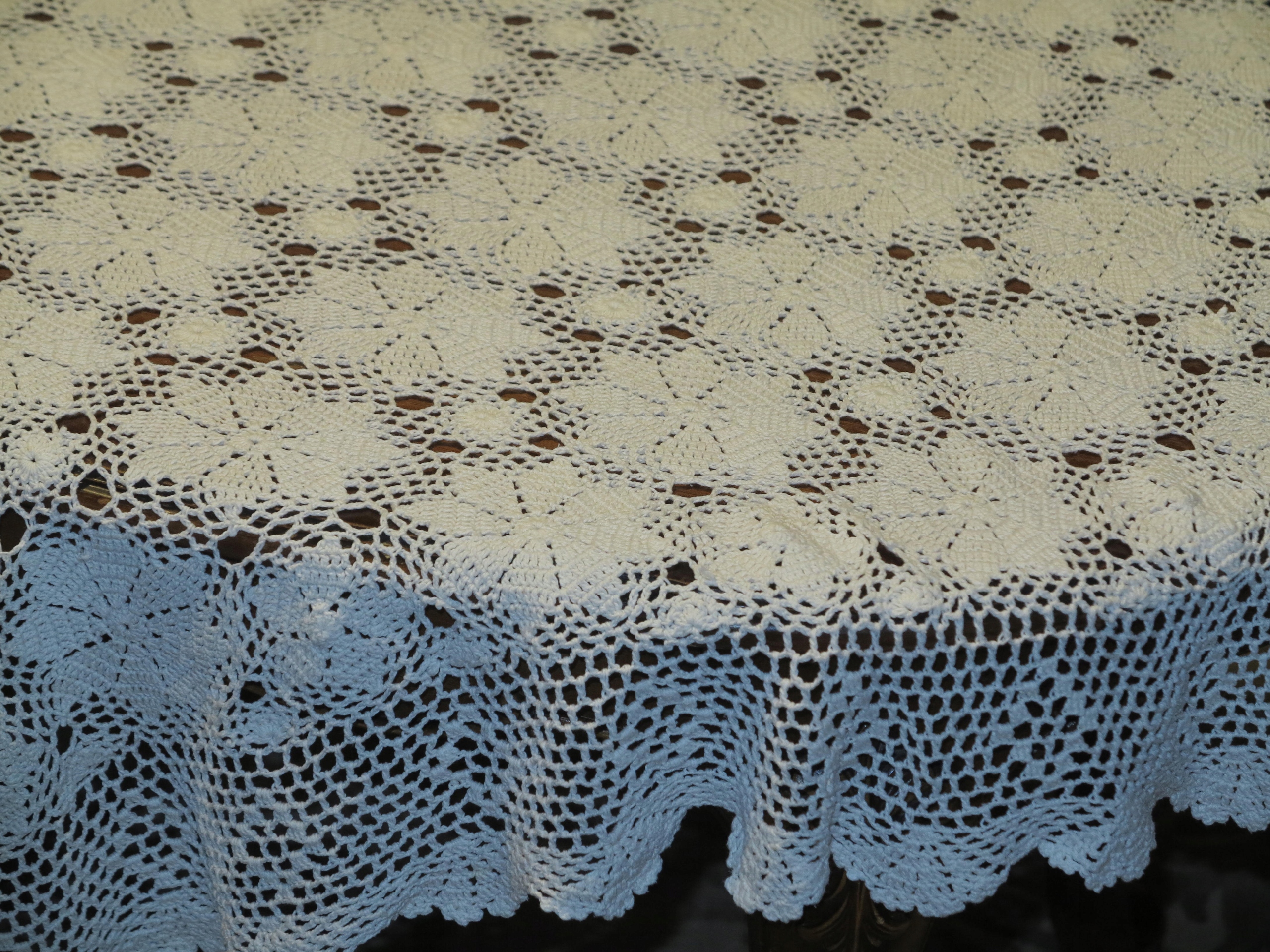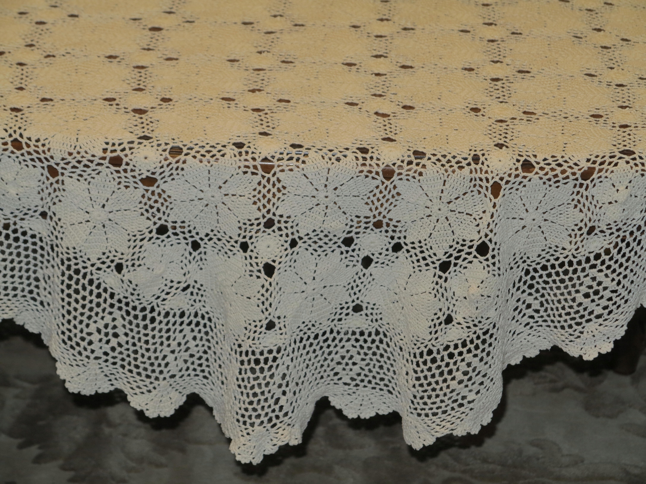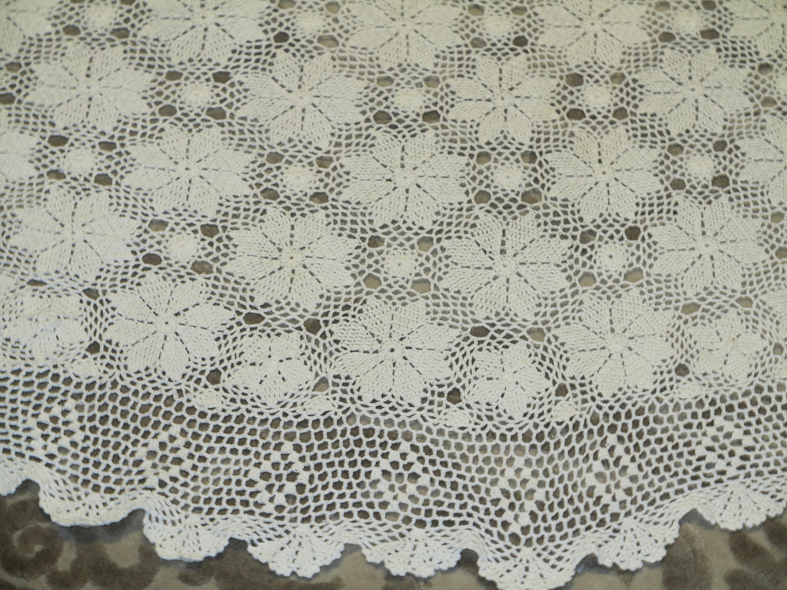 КРАСИВАЯ КРЕМОВАЯ ХЛОПКОВАЯ СКАТЕРТЬ ВЯЗАННАЯ КРЮЧКОМ - 133см
