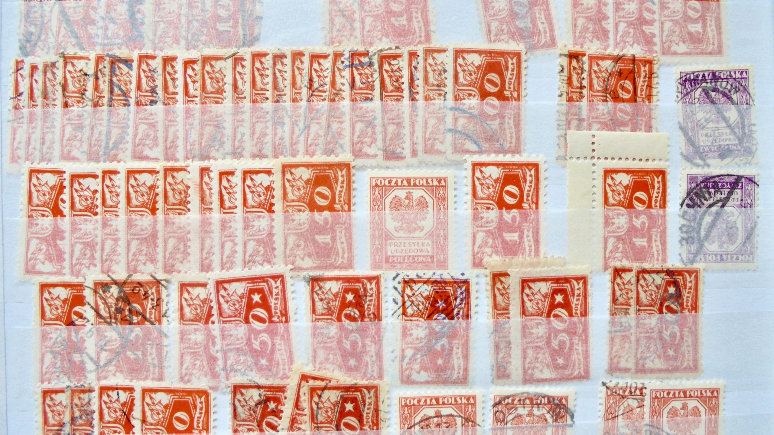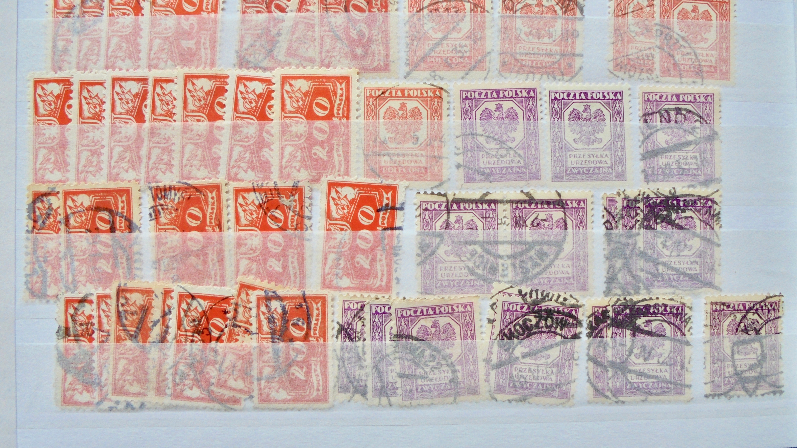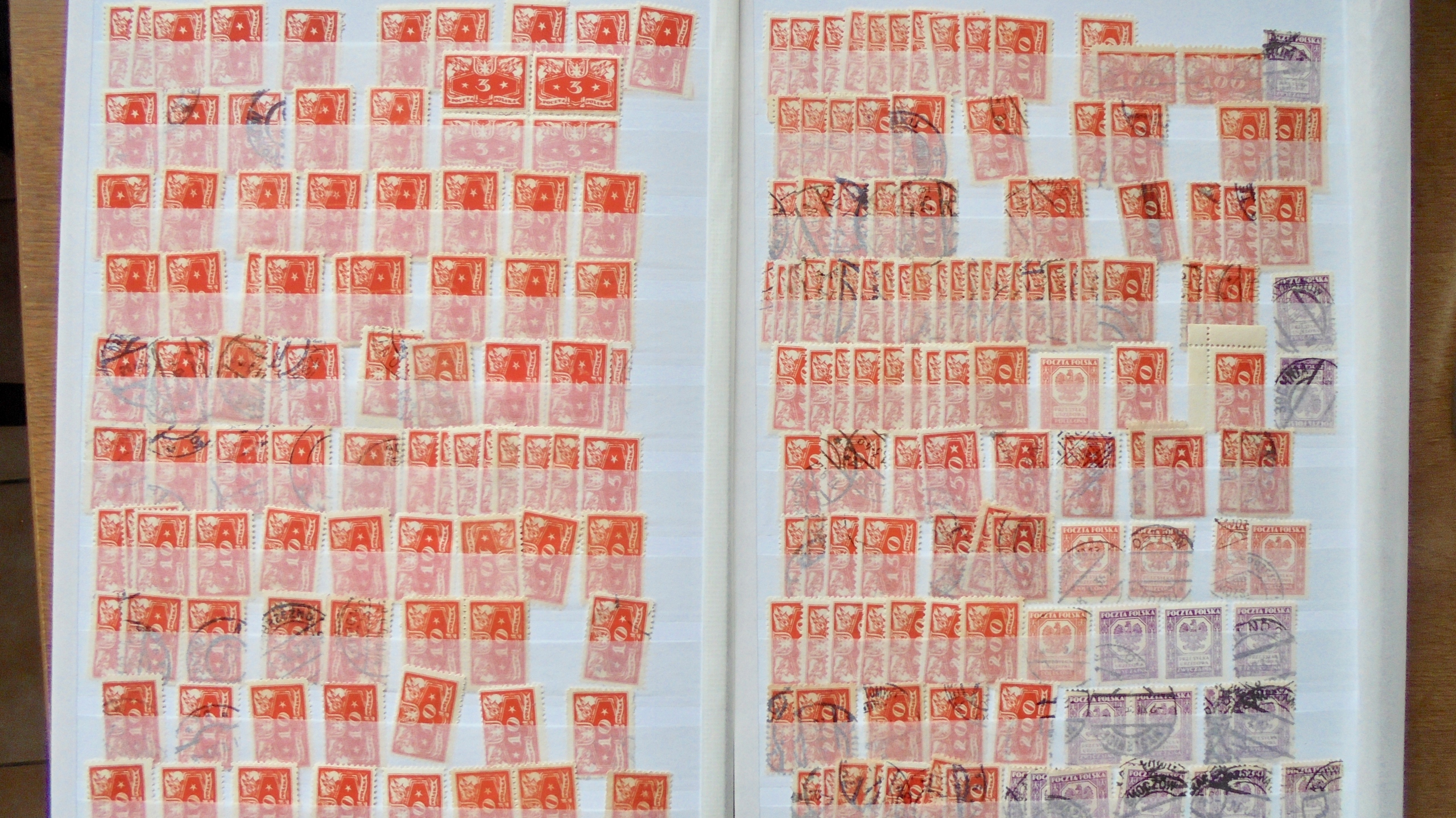 Хорошая польская КОЛЛЕКЦИЯ пустых*/** и погашенных марок на 4 страницах.