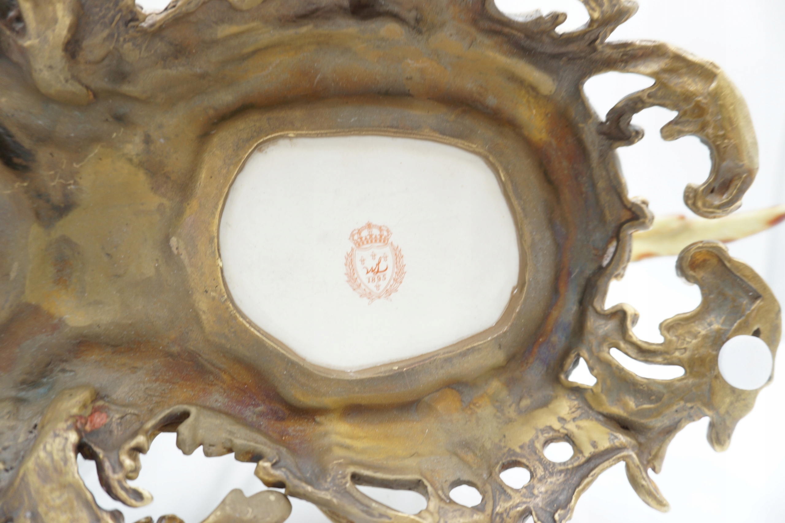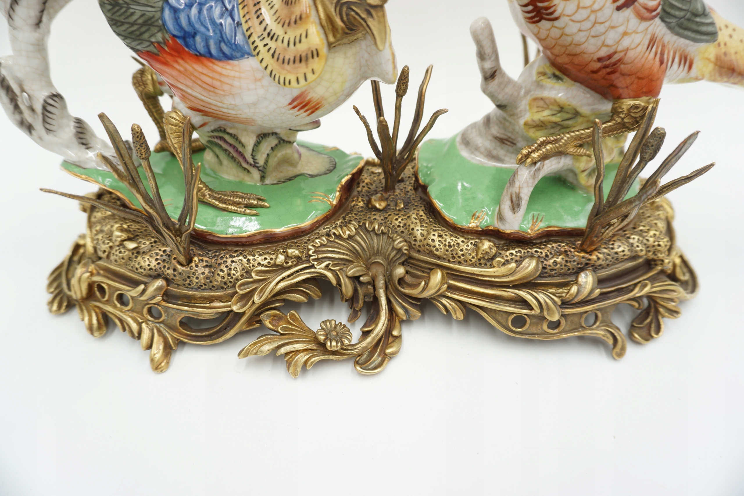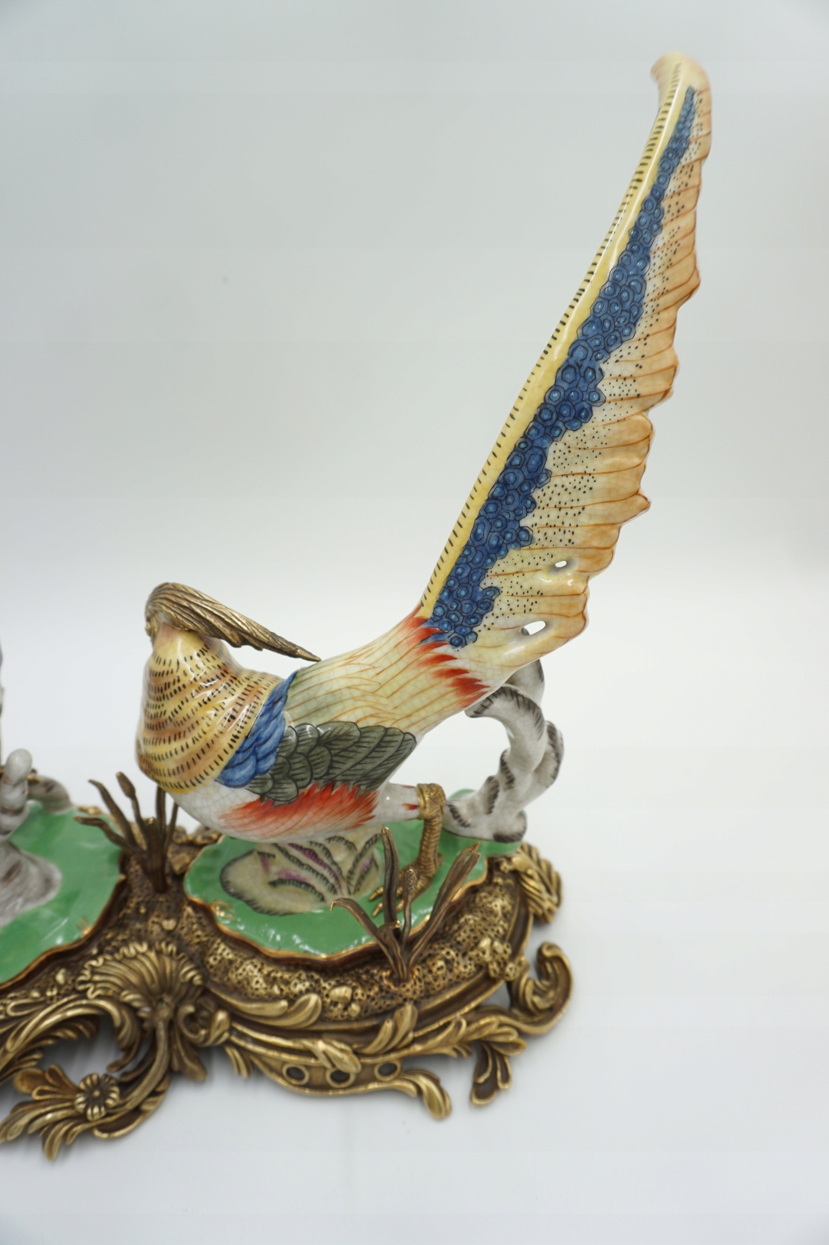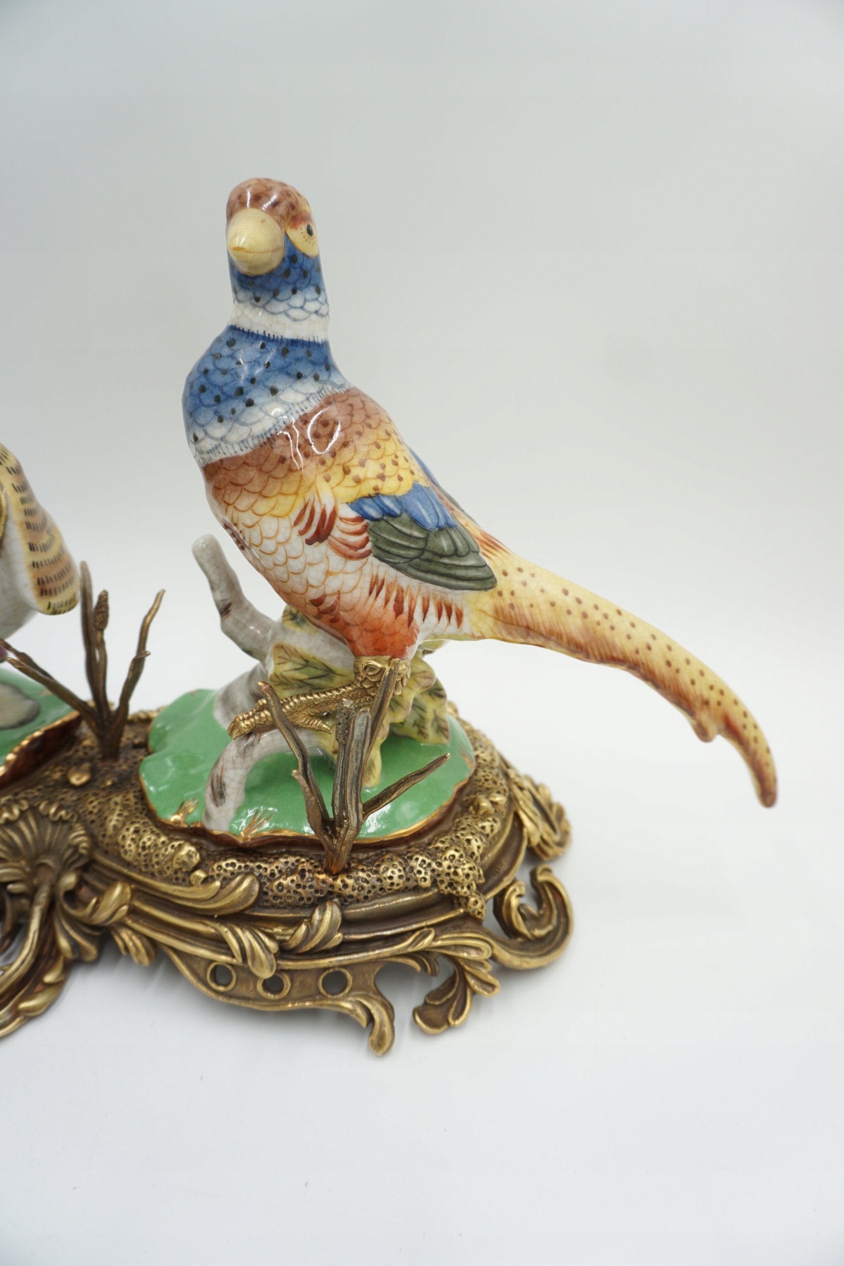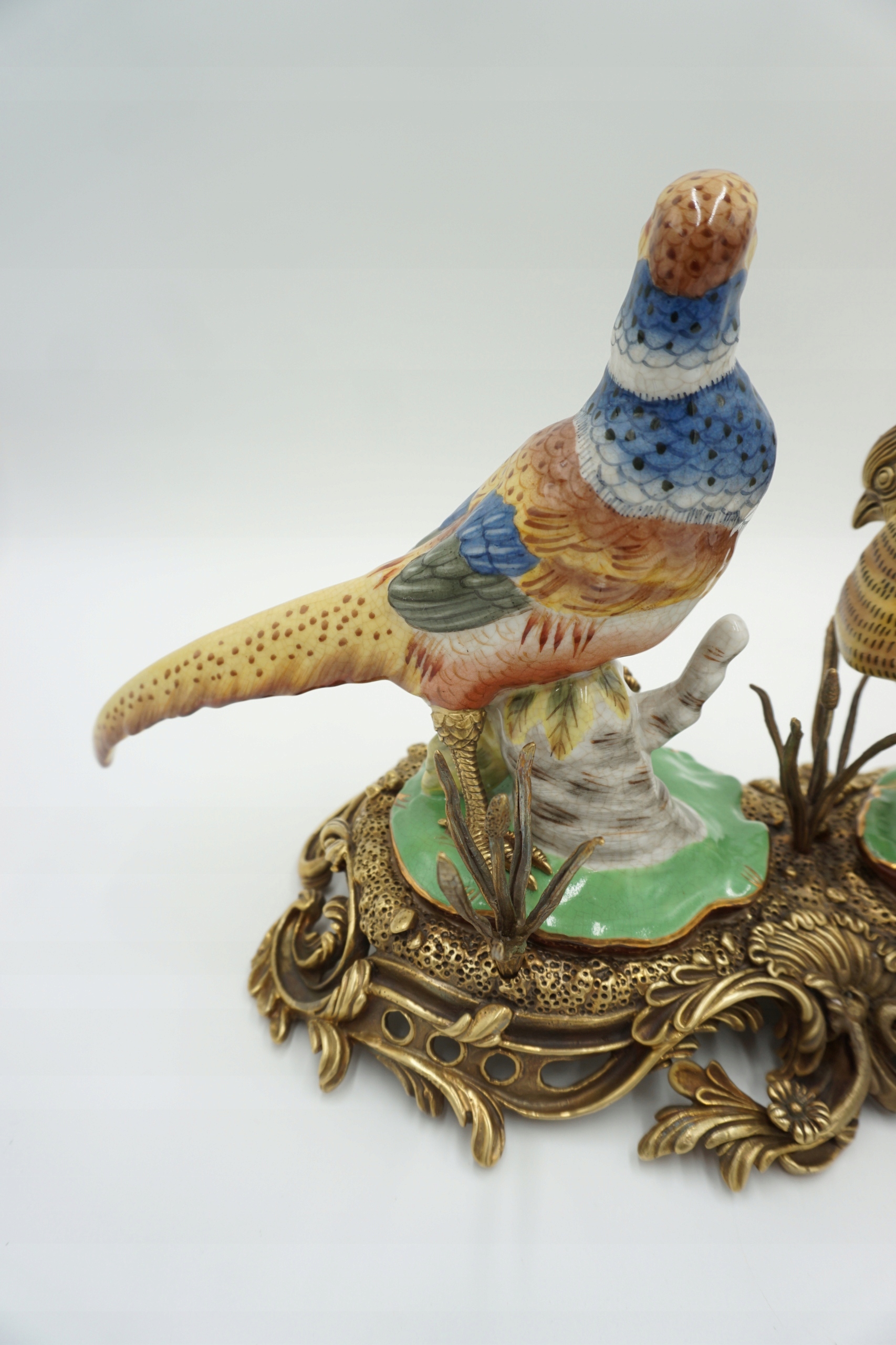 КРАСИВАЯ ФАРФОРОВАЯ ФИГУРА С БРОНЗОВЫМИ ФАЗАНАМИ.