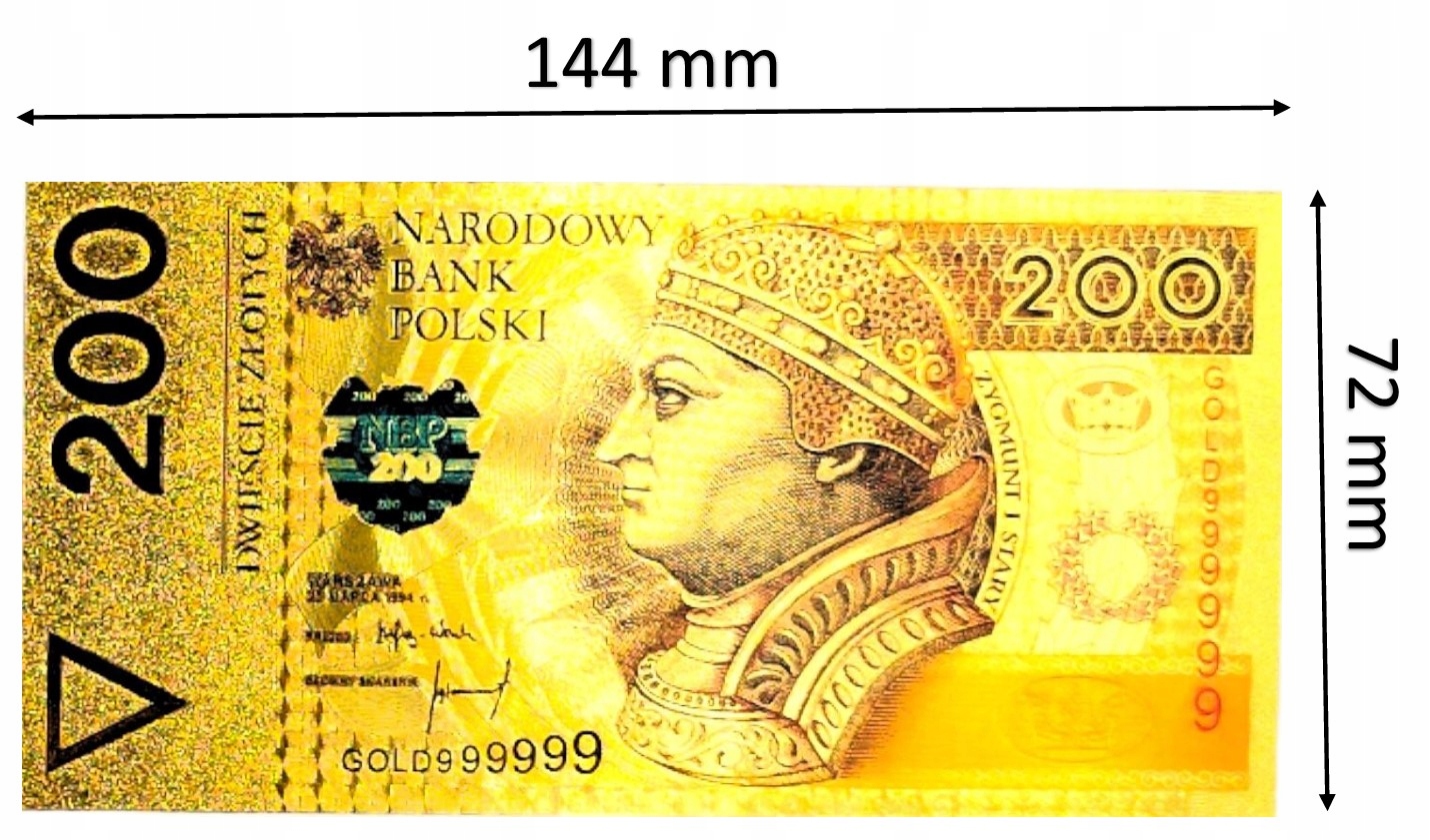 ГАРНА ПОЗОЛОЧЕНА УНІКАЛЬНА БАНКНОТА 200 ЗЛ