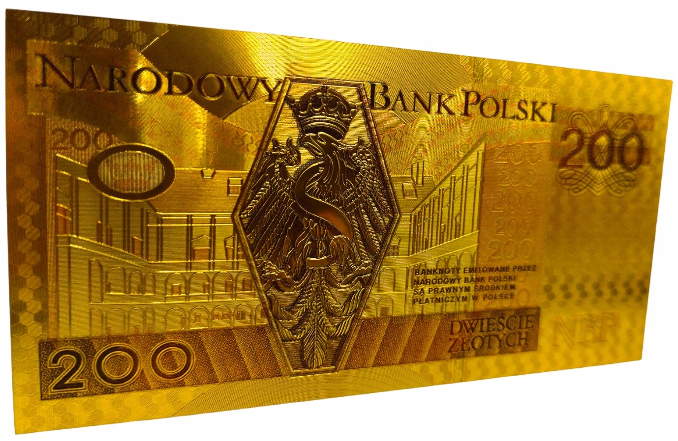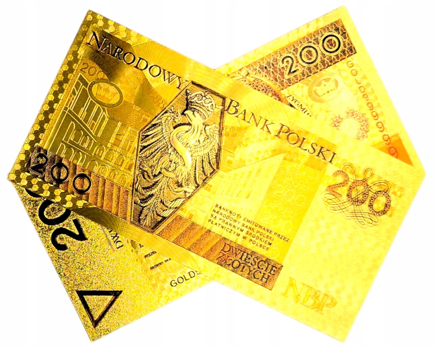 Точная копия польской банкноты того же номинала, изготовленная из ПВХ и покрытая золотой фольгой.