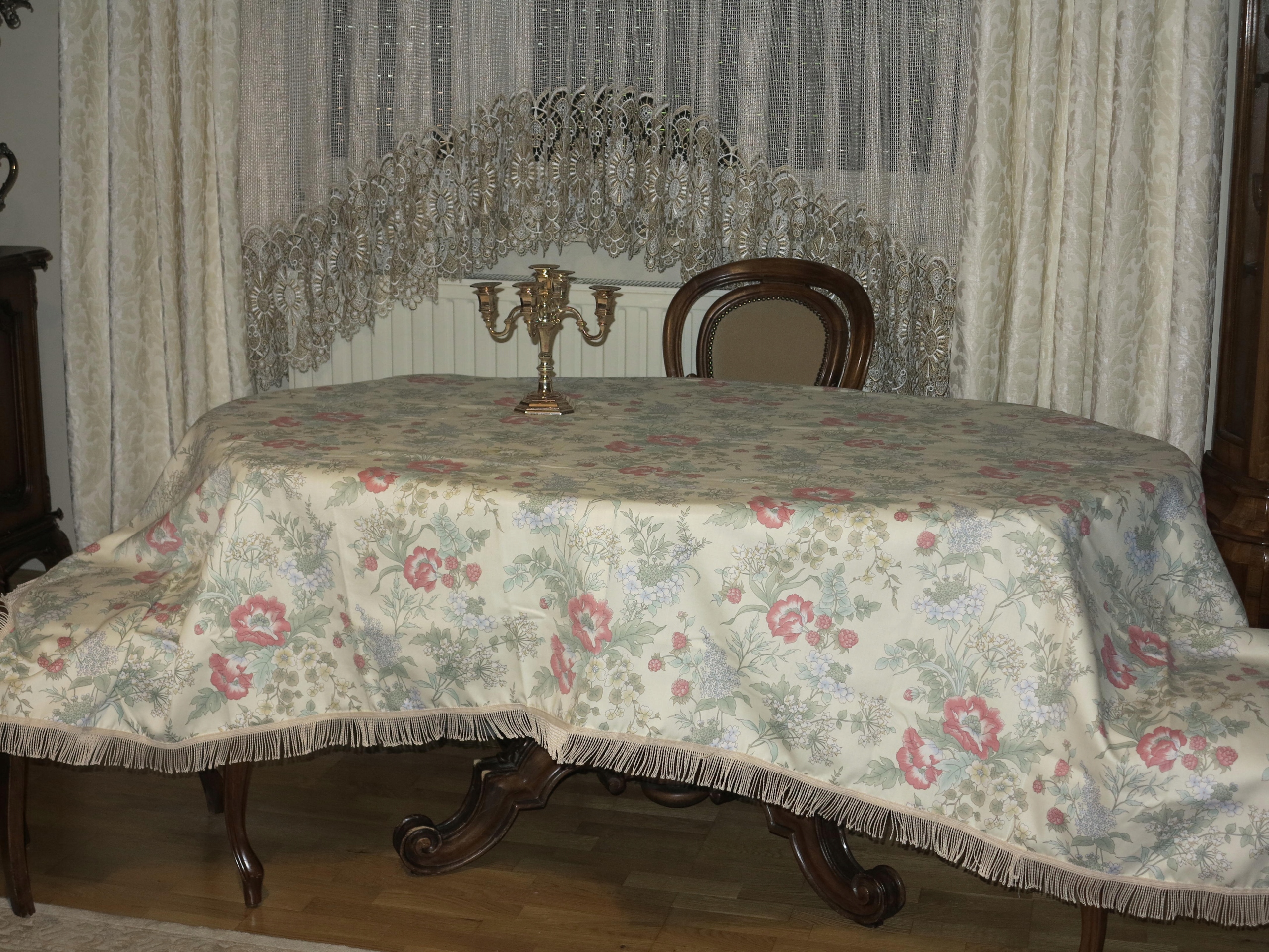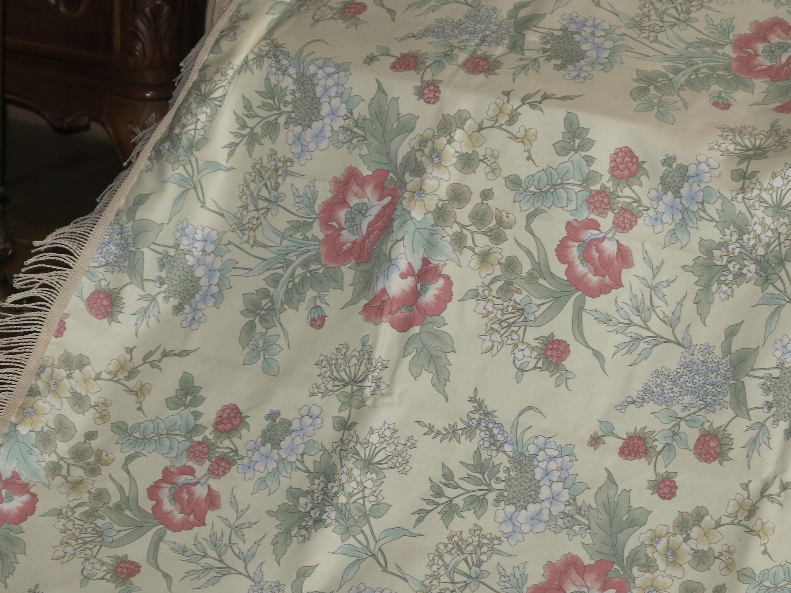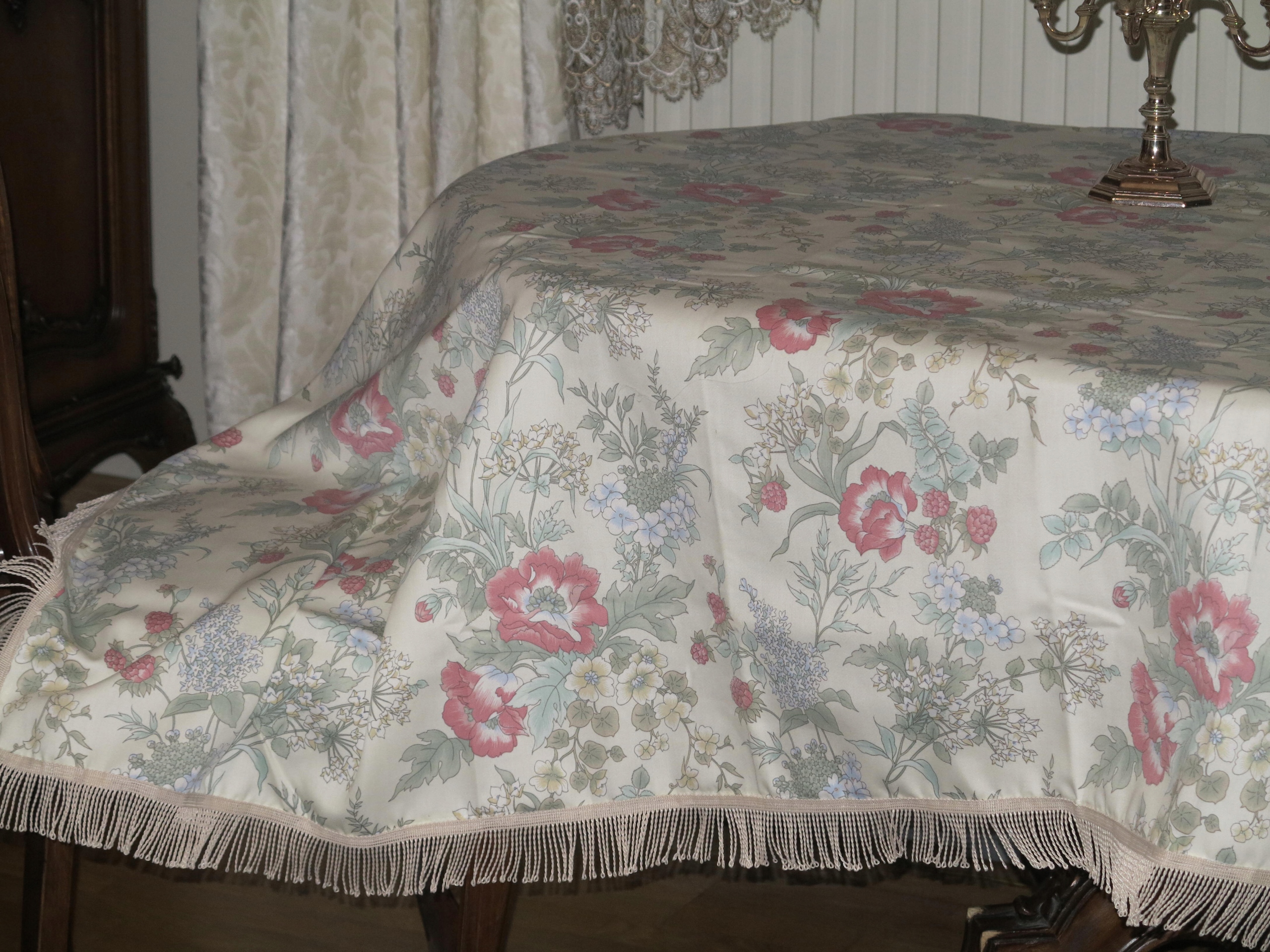 ГАРНА СКАТЕРТИНА КВІТИ, ТРАВИ, МАЛИНОВИЙ АТЛАС 233/169