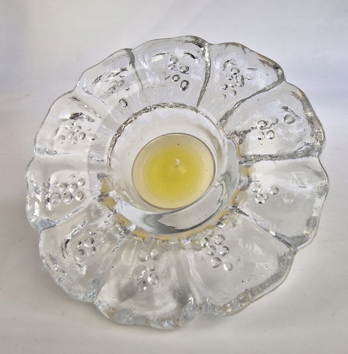 ГАРНА СКЛЯНА ПІДСВІЧНИЦЯ ЯК КВІТКА СКАНДИНАВСЬКЕ ХУДОЖНЄ СКЛО / для чайних свічок