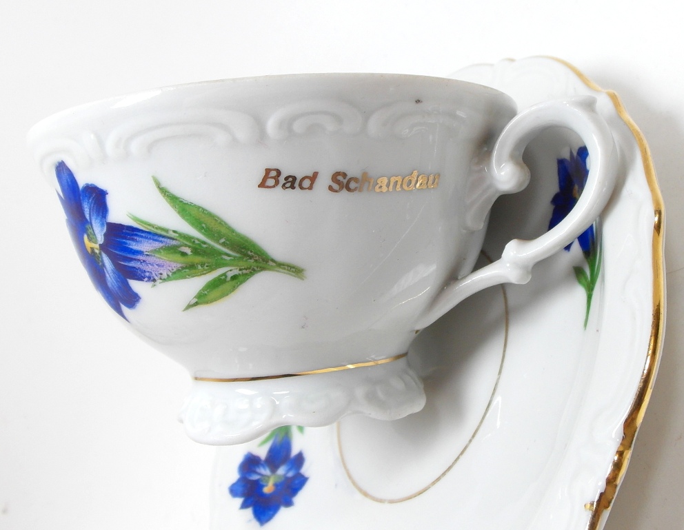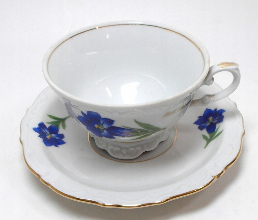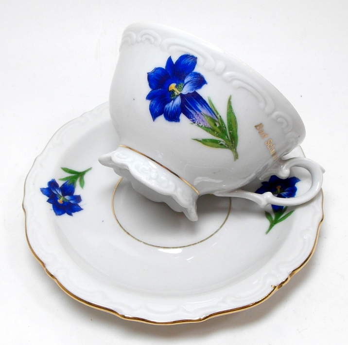 Предмет аукциона — красивая старинная чашка для эспрессо. Белый фарфор с рельефом, цветами и позолотой.