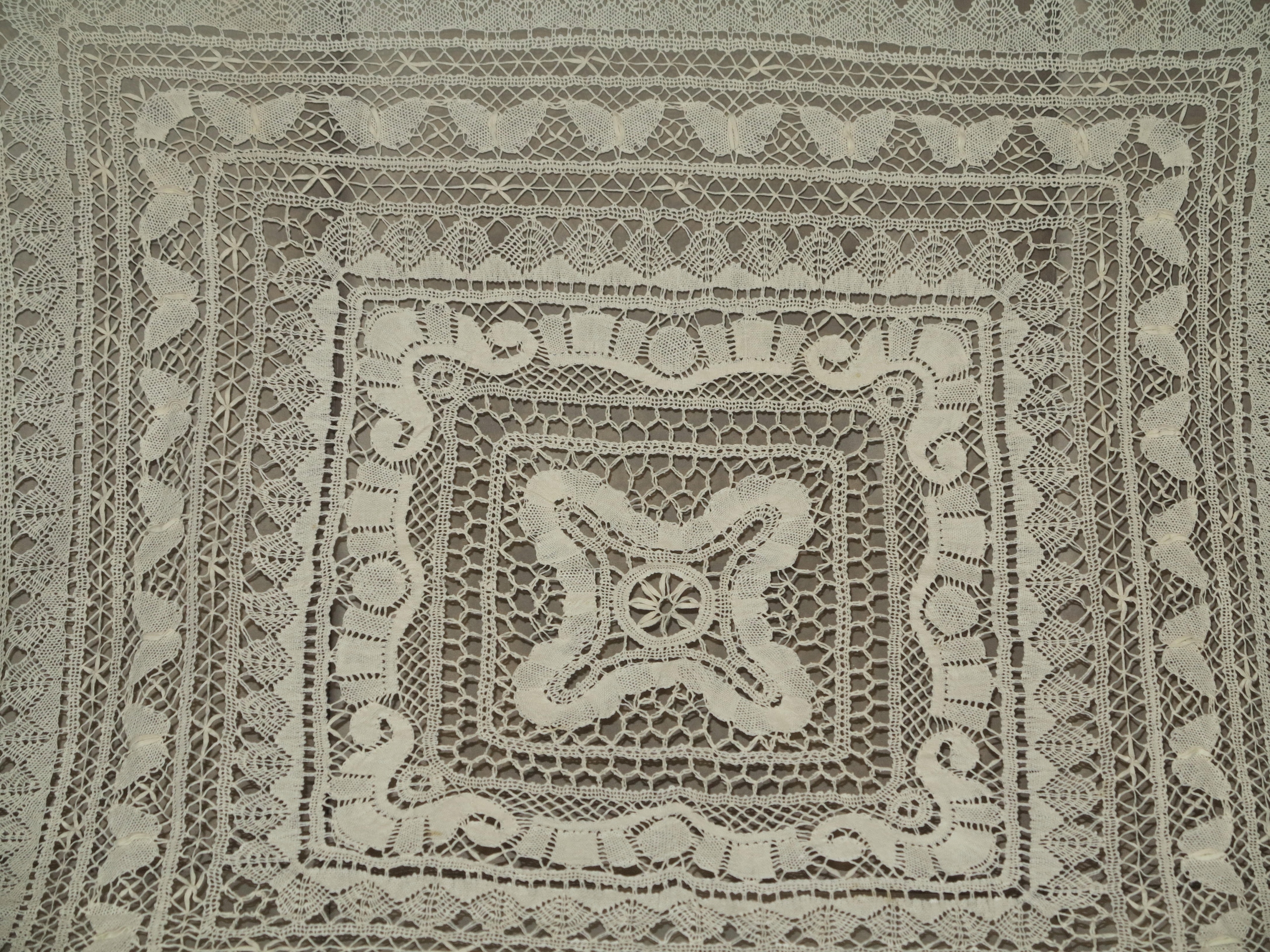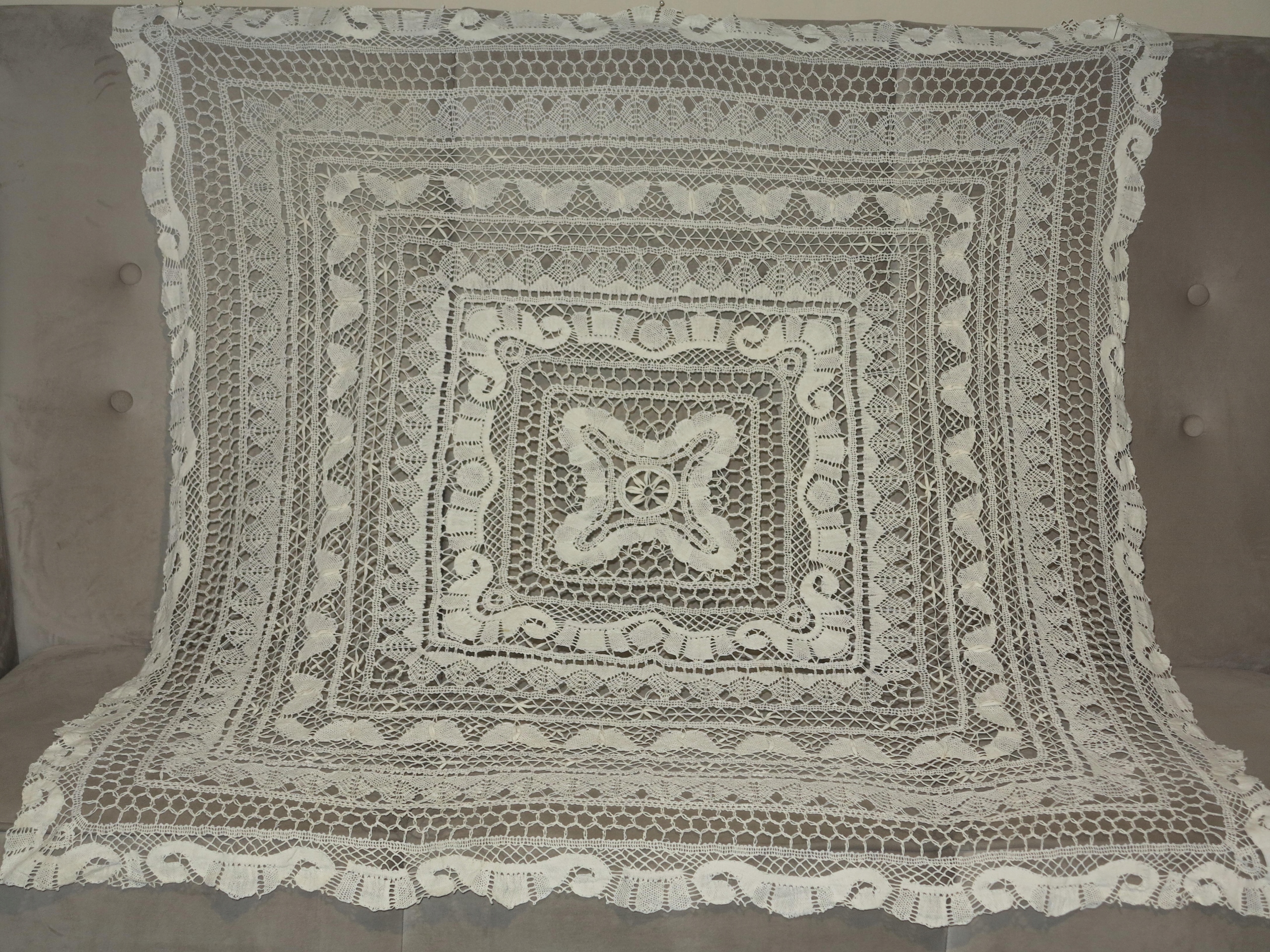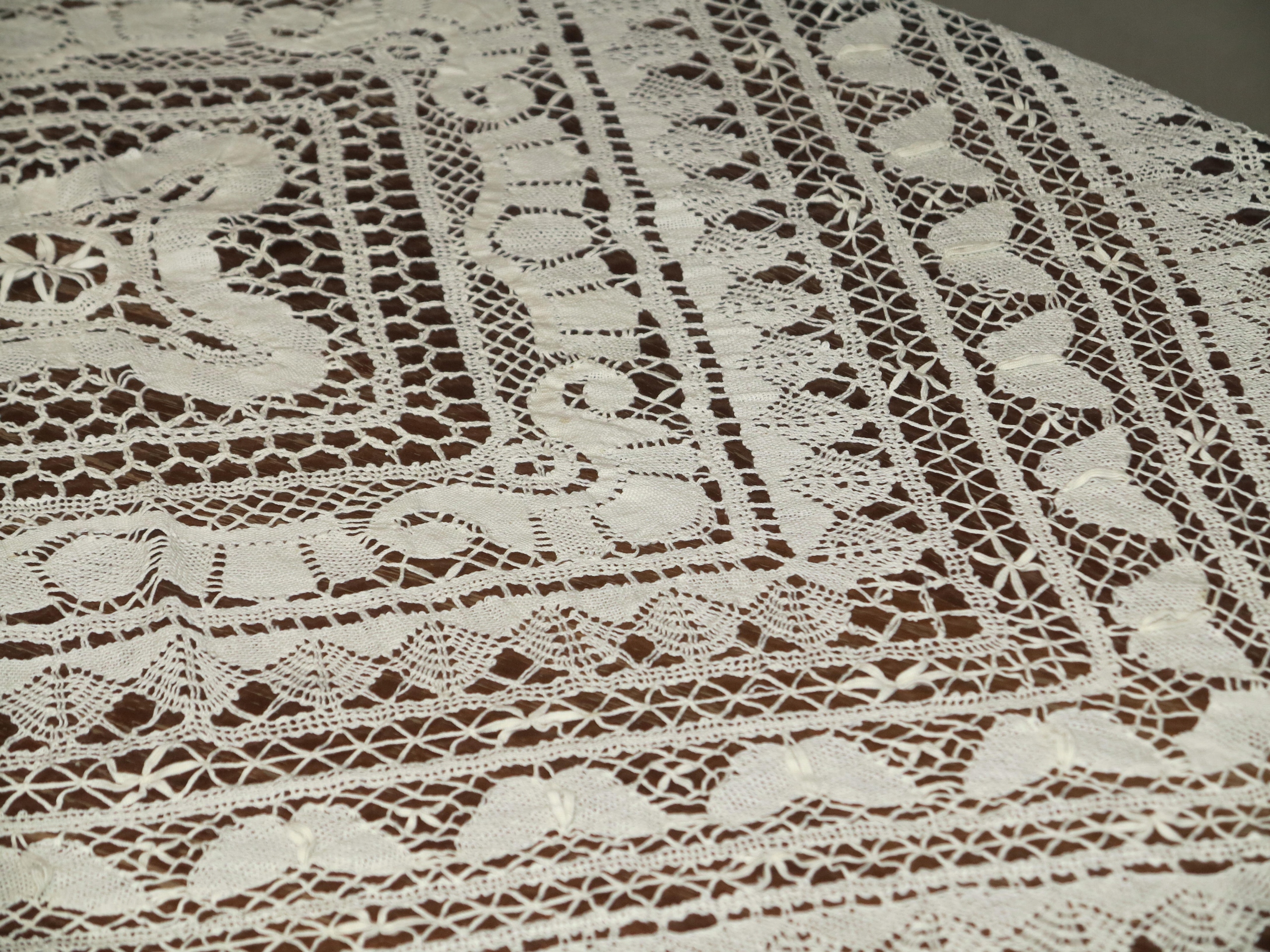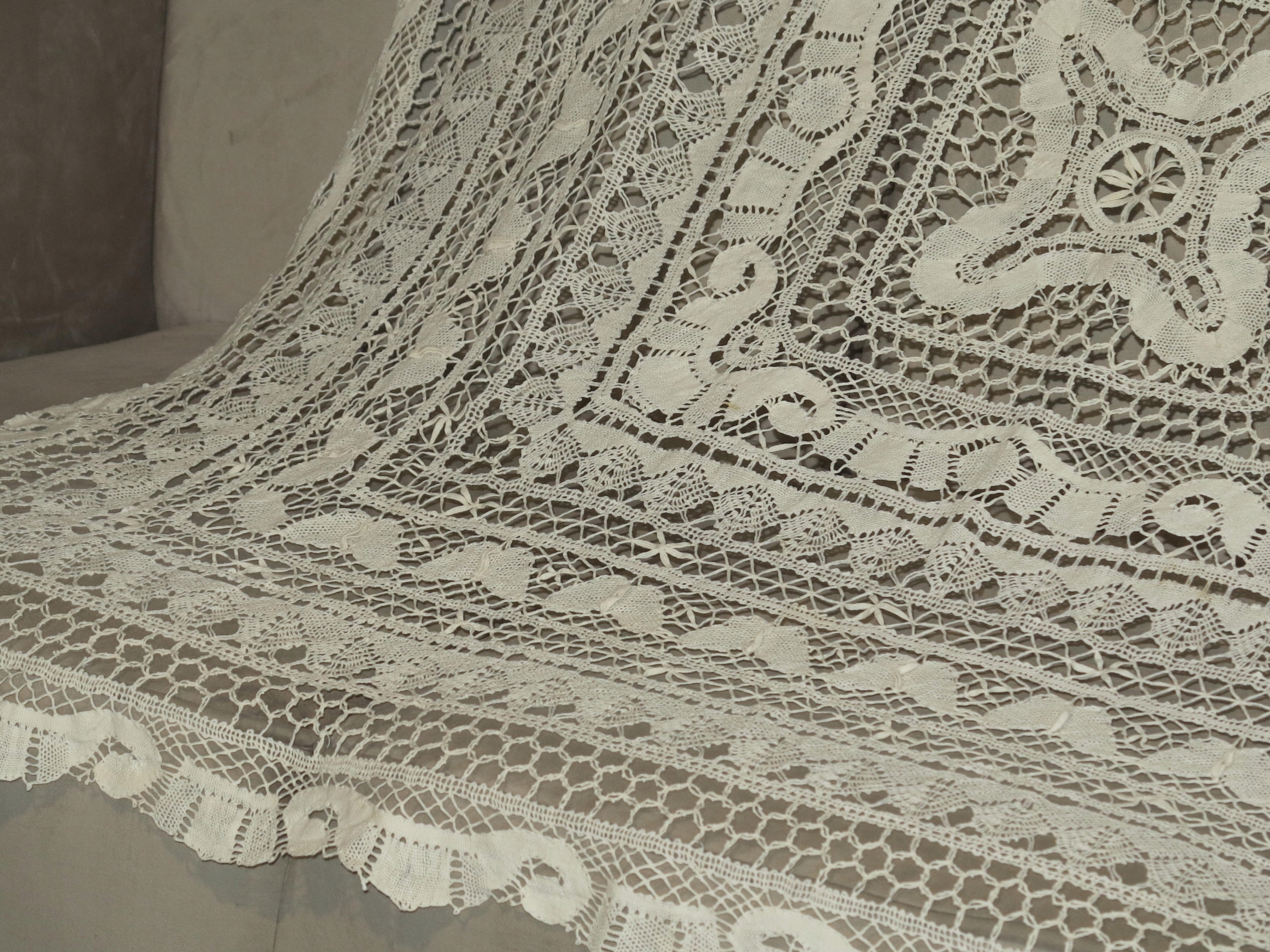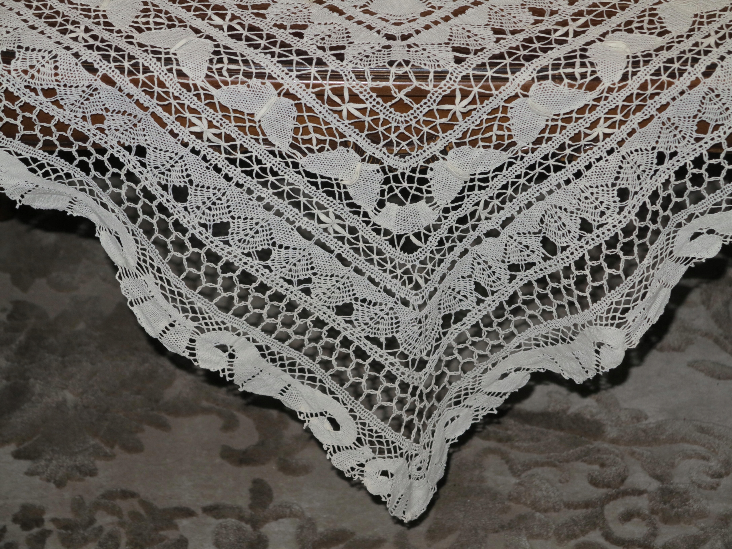 КРАСИВУЮ СТАРУЮ СКАТЕРТЬ, ПОЛНОСТЬЮ РУЧНУЮ РАБОТУ С КРУЖЕВОМ, ЦВЕТА ЭКРУ