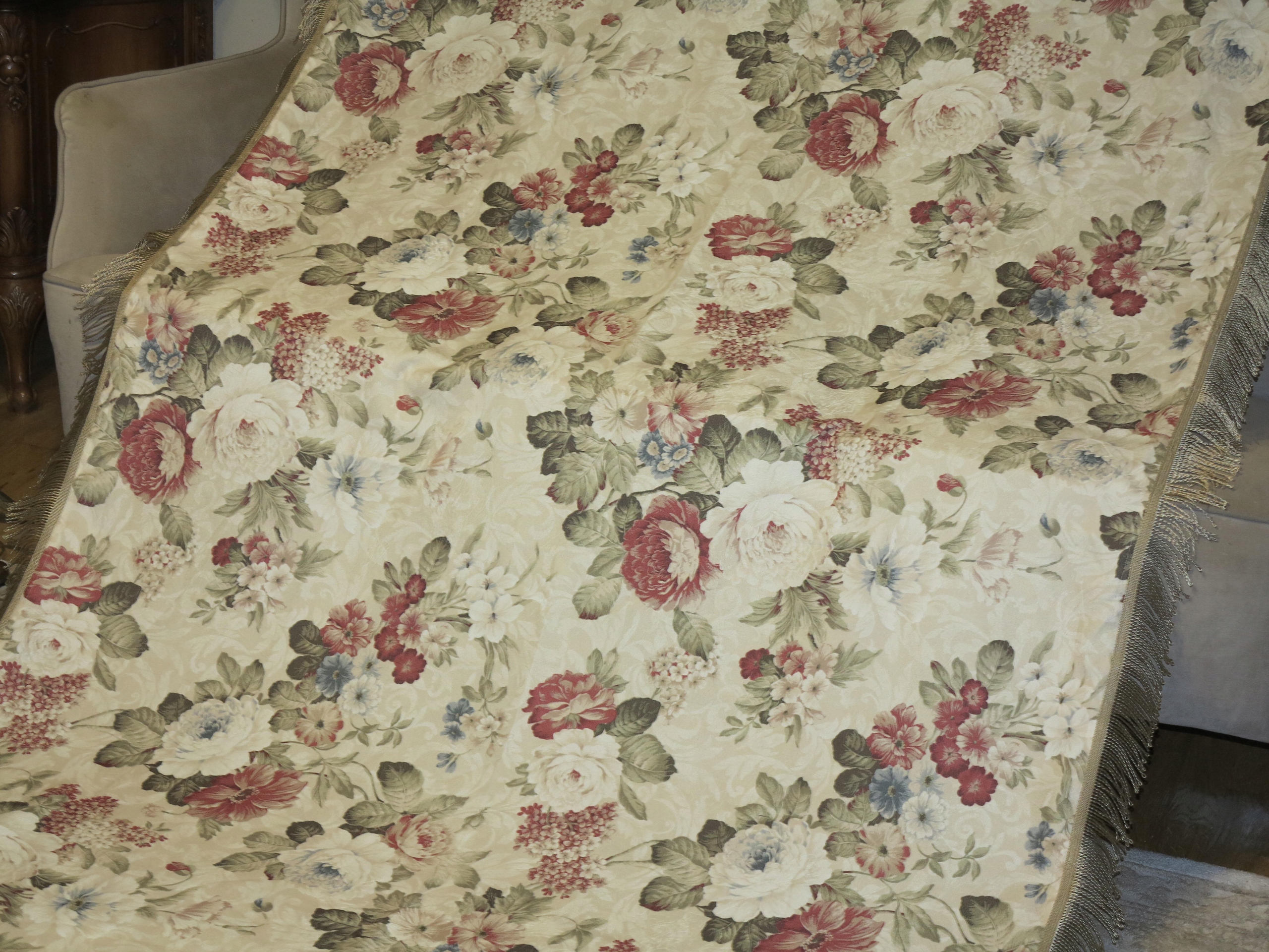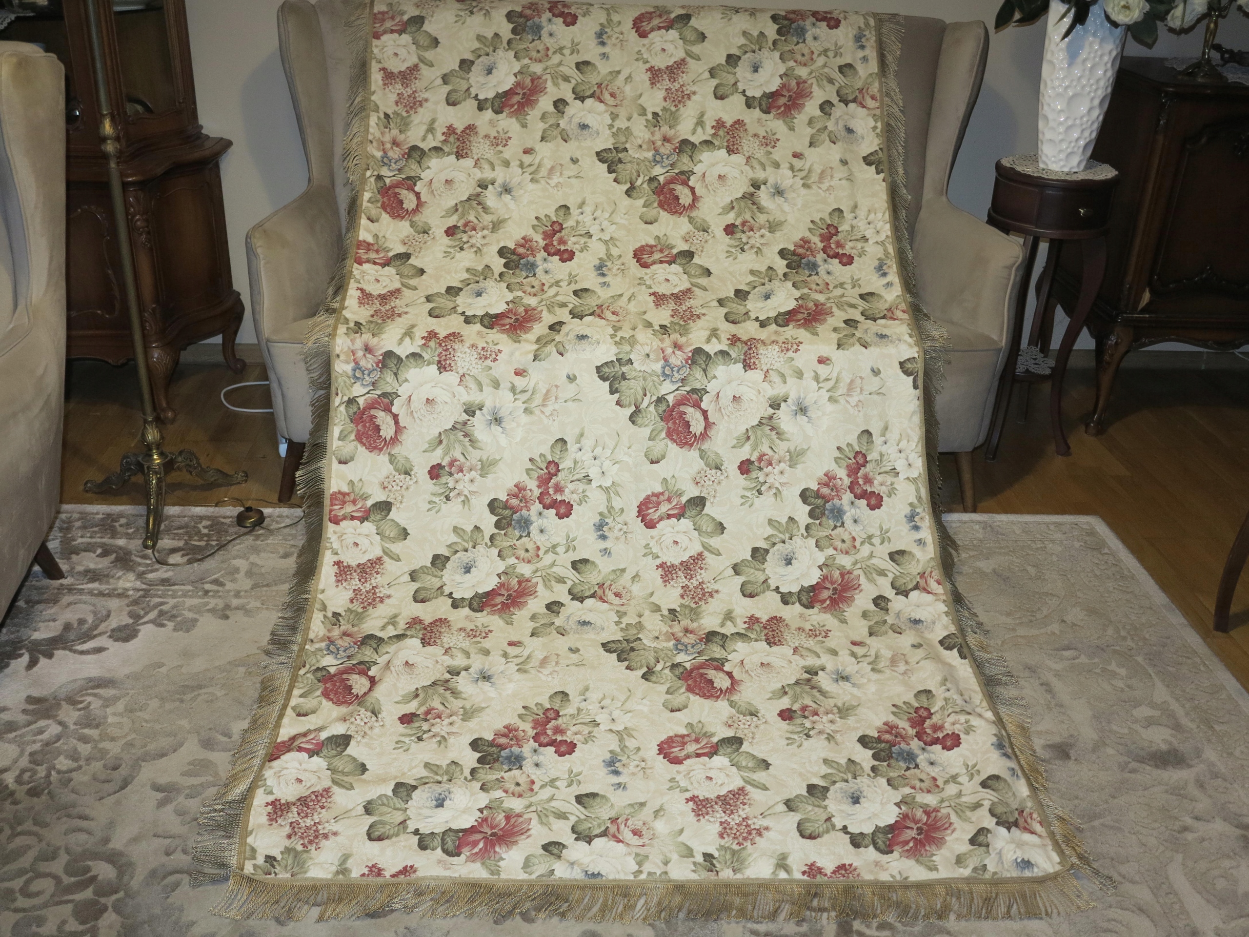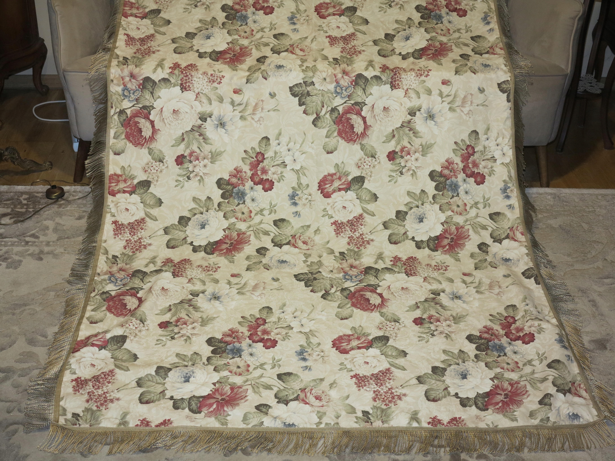 КРАСИВАЯ ОГРОМНАЯ АНГЛИЙСКАЯ СКАТЕРТЬ С ЦВЕТОЧНЫМИ БУКЕТАМИ И БАХОРОЙ 250/130+7
