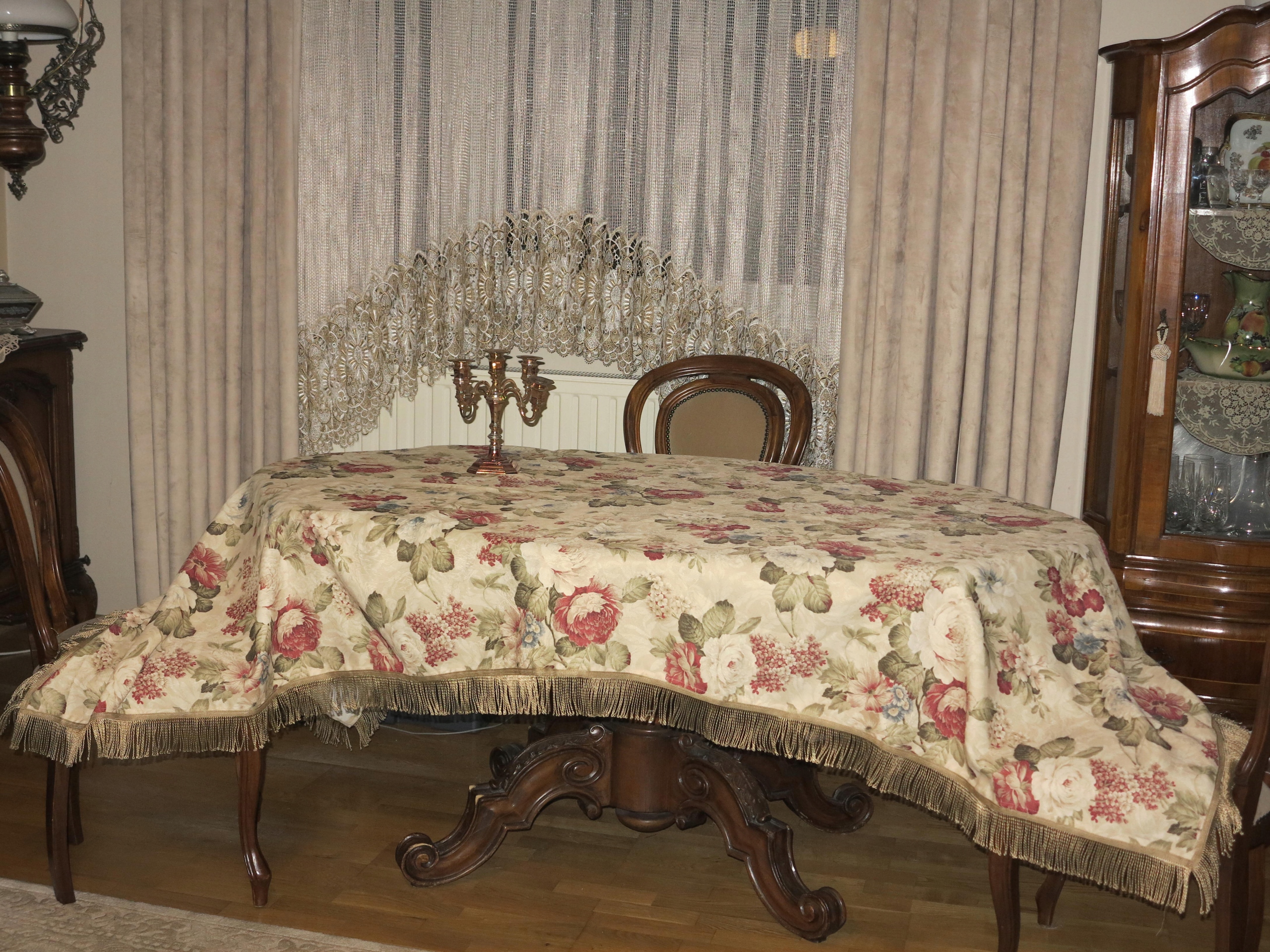 Предмет аукциона – исключительно красивая английская скатерть, усыпанная букетами цветов. Б/у, в очень хорошем состоянии. Рекомендую.