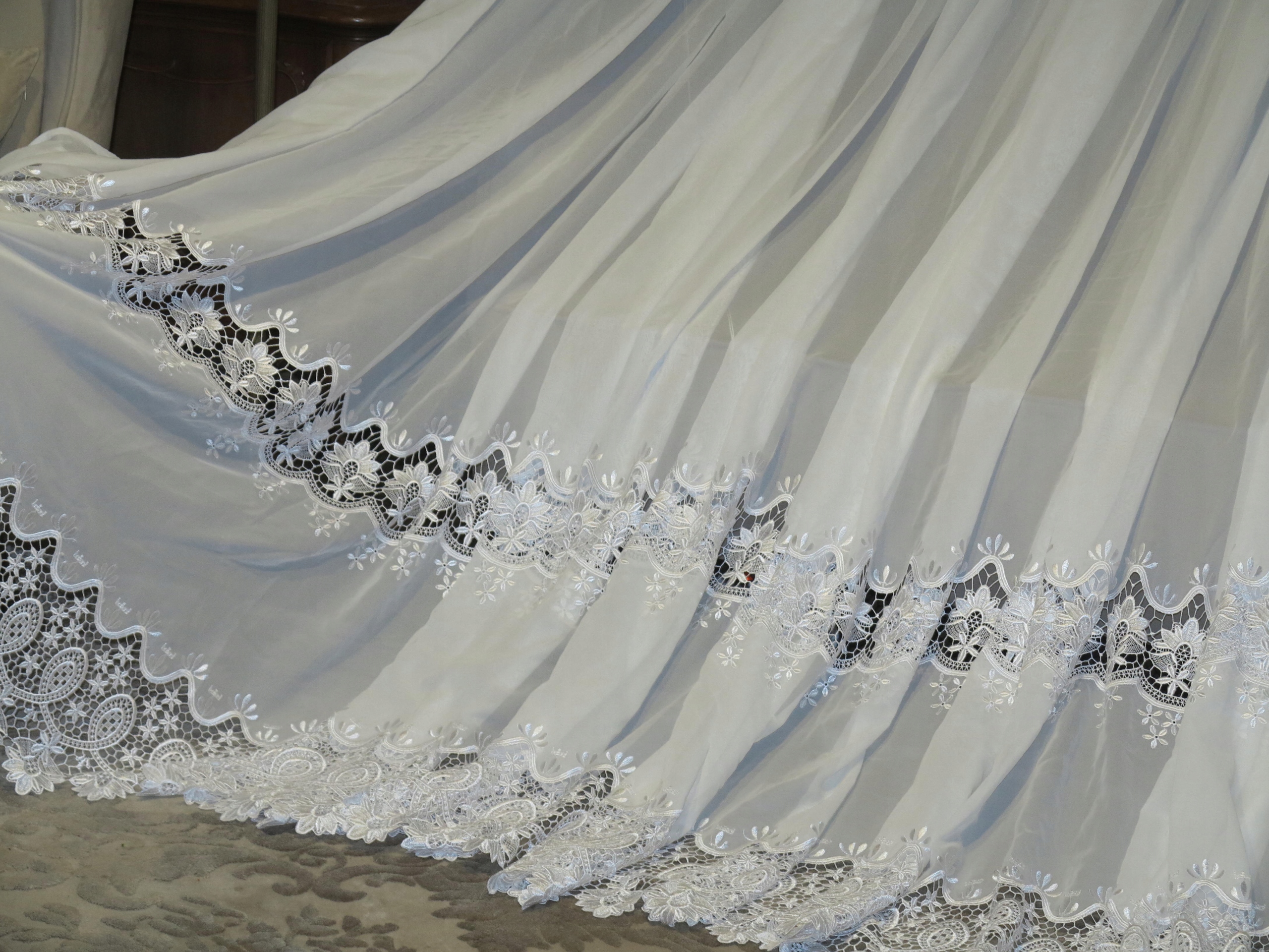 КРАСИВАЯ, струящаяся, ОГРОМНАЯ ШТОРА ВНИЗУ С ДВУМЯ РЯДАМИ ПЕРЛАМУТНОГО ГИПЮРА