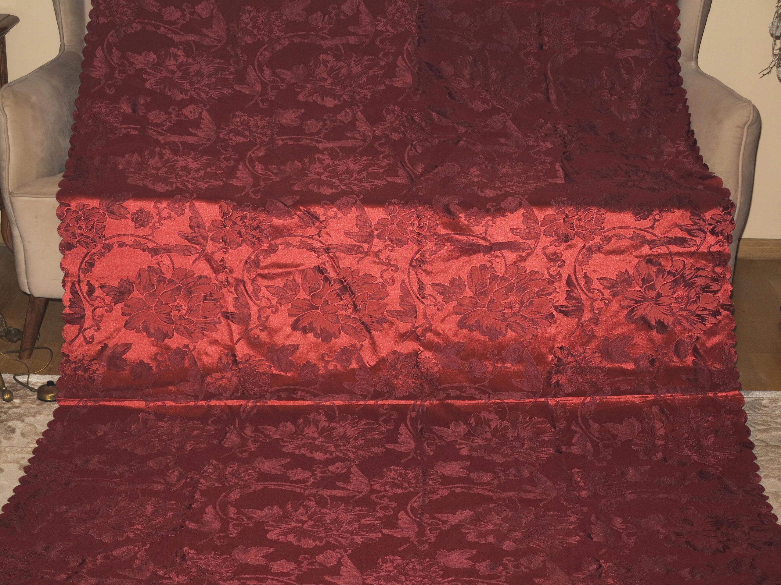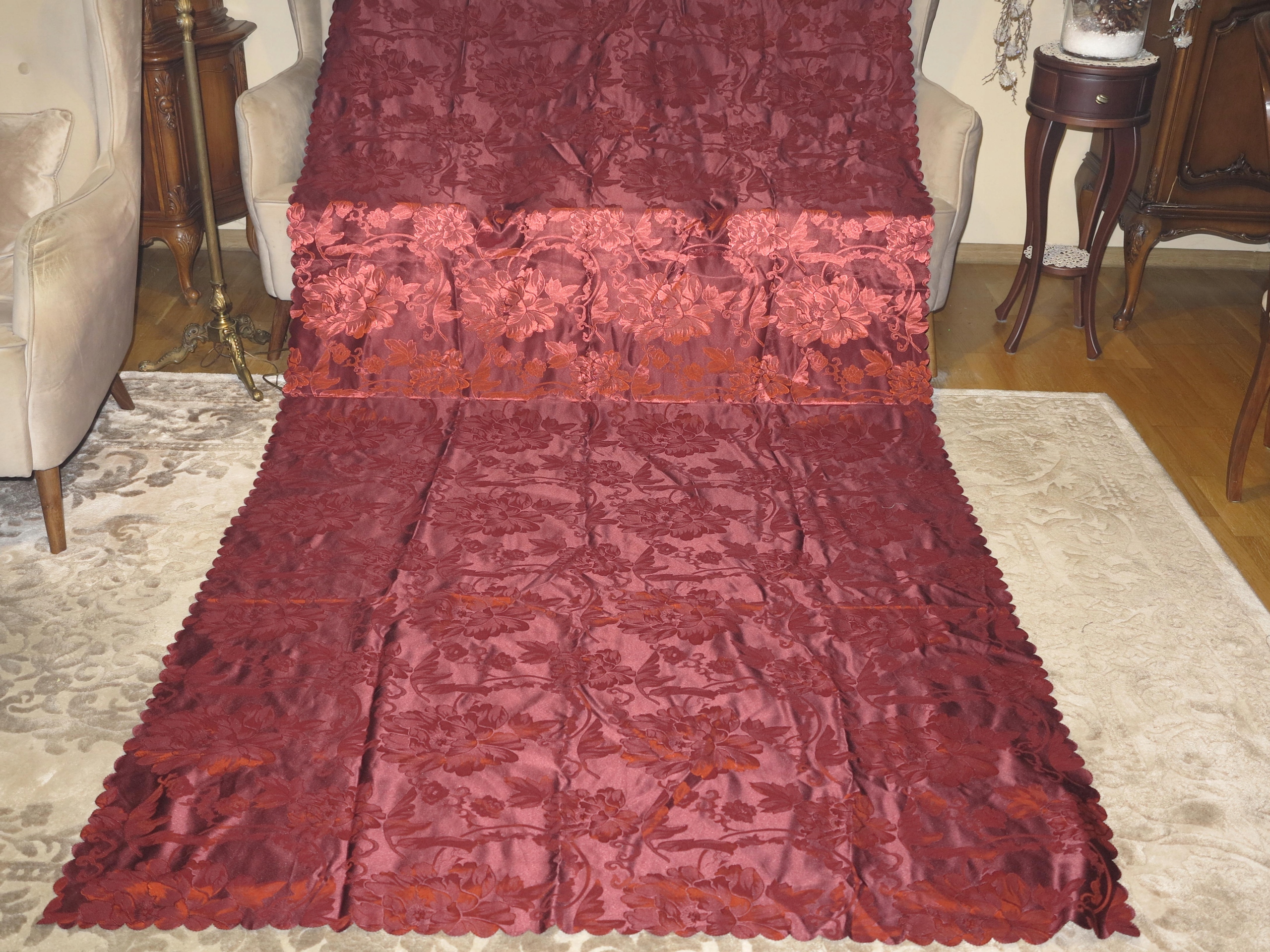 ГАРНА ВЕЛИЧЕЗНА ВИВОРЕЧНА СКАТЕРТИНА З ВИШИТИМИ ВЕЛИКИМИ КВІТАМИ Бордовий-302/150