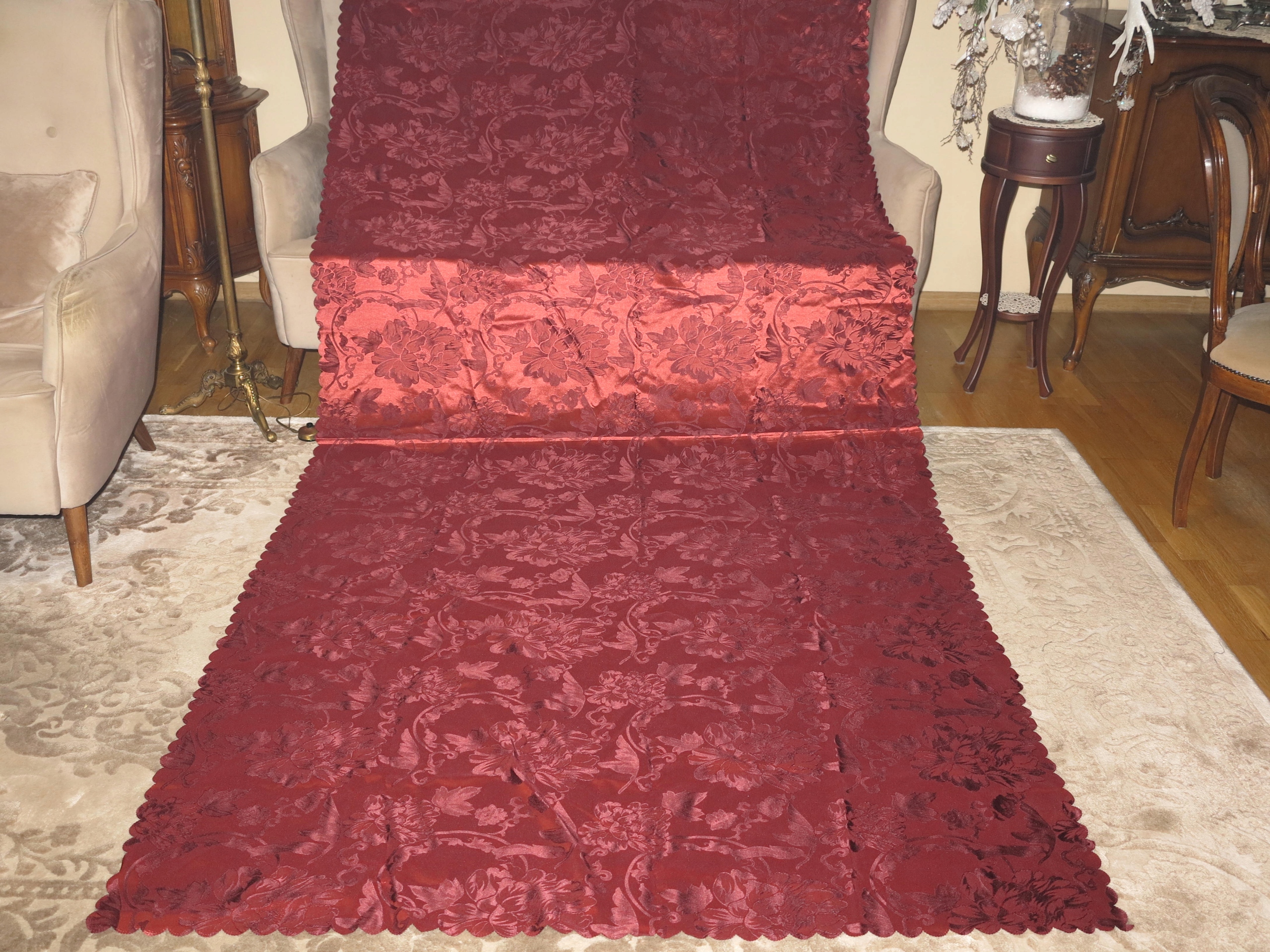 Предмет аукциона – чрезвычайно красивая и очень декоративная, огромная, двусторонняя скатерть с тиснением крупных цветов. . Скатерть имеет размеры: 302/150см. Продаю скатерть б/у, в отличном состоянии - новая без бирок. Рекомендую, будет красивое украшение стола.