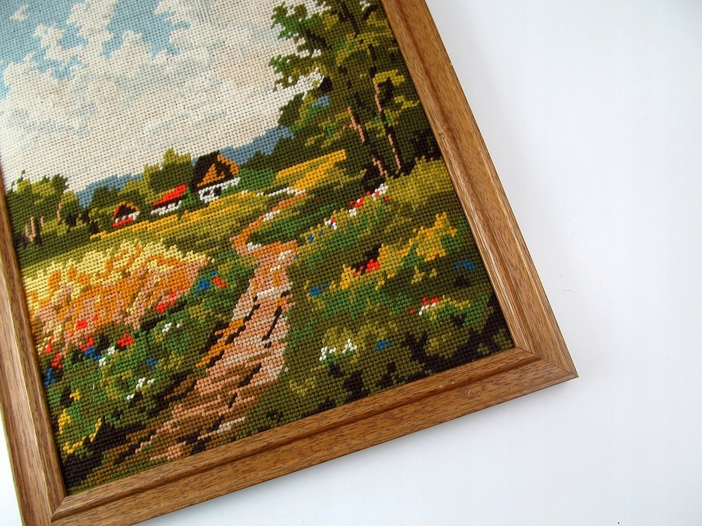 КРАСИВАЯ ВЫШИВАННАЯ КАРТИНА В РАМКЕ ПЕЙЗАЖНАЯ ВЫШИВКА