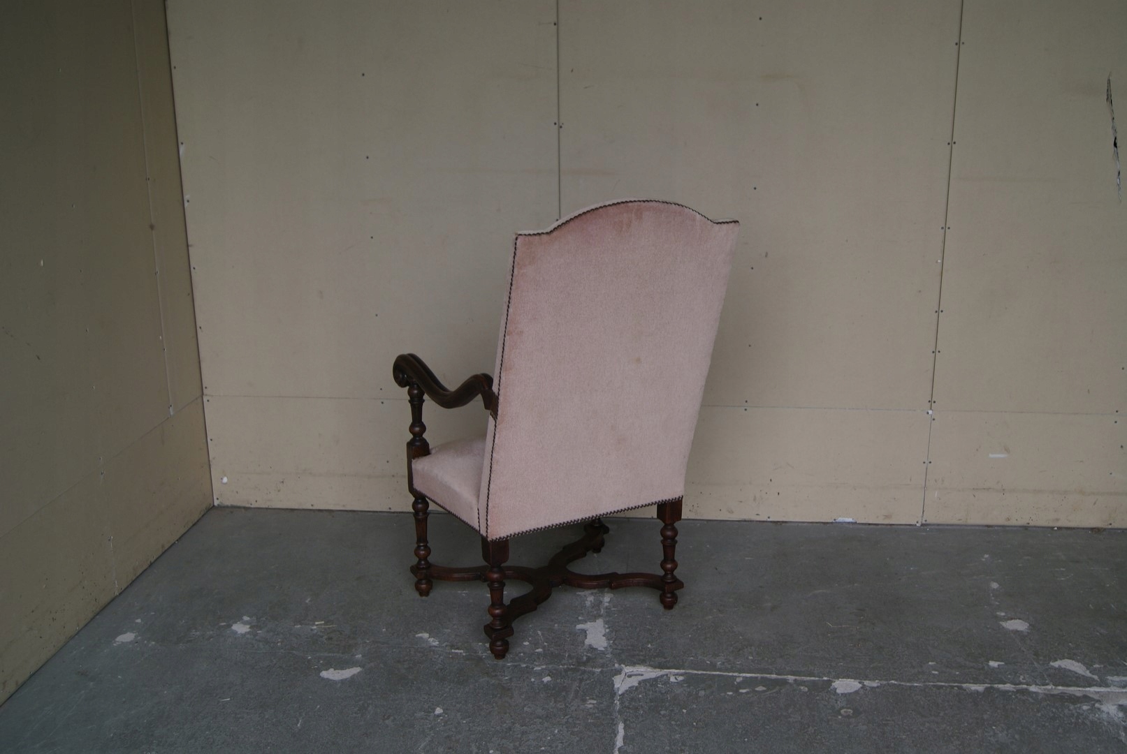 КРАСИВОЕ, ВЫСОКОЕ ДУБОВОЕ КРЕСЛО, ГРЯЗНО-РОЗОВАЯ ОБИВКА