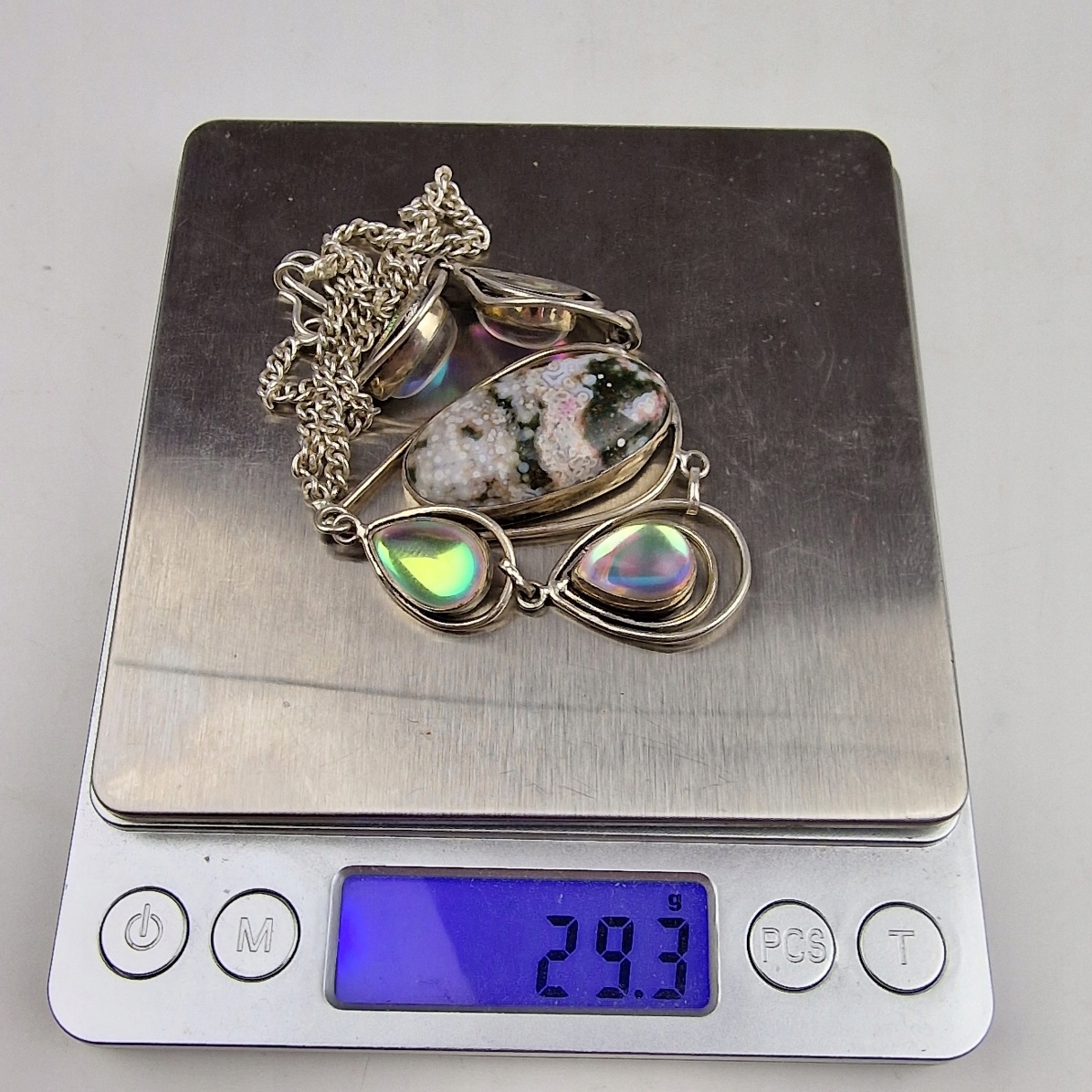 КРАСИВОЕ ОЖЕРЕЛЬЕ С КРУПНЫМИ КАМНЯМИ, вес 29,3 г.