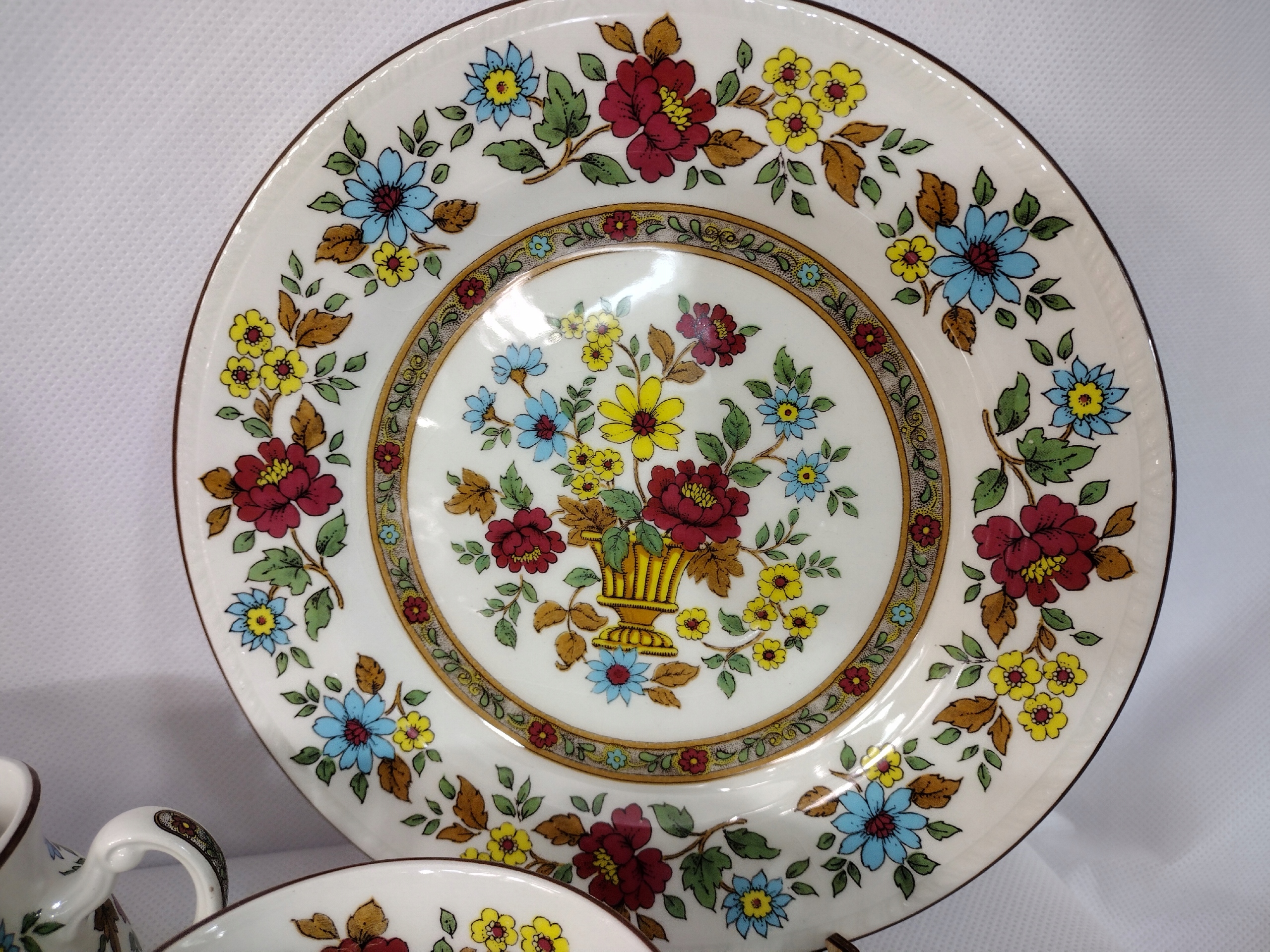 Очень богато декорированный сервиз в английском стиле, рассчитанный на двенадцать персон.