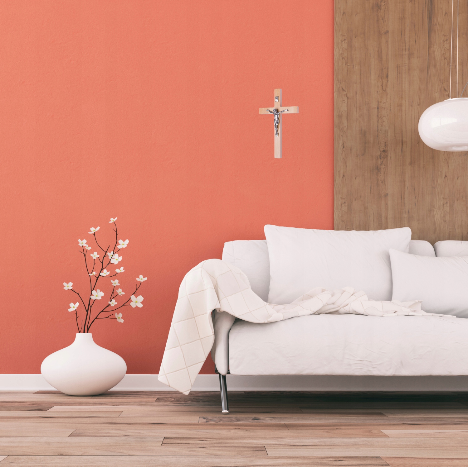ДЕРЕВЯННЫЙ КРЕСТ НА СТЕНЕ В НАТУРАЛЬНОМ ЦВЕТЕ + СЕРЕБРЯНАЯ ПОЛОСКА