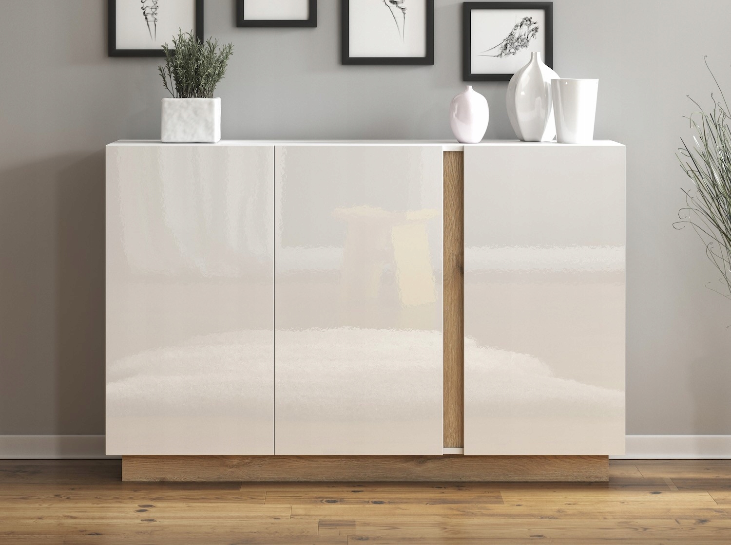 Все это благодаря глянцу фасадов в сочетании с контрастным дубовым акцентом.
