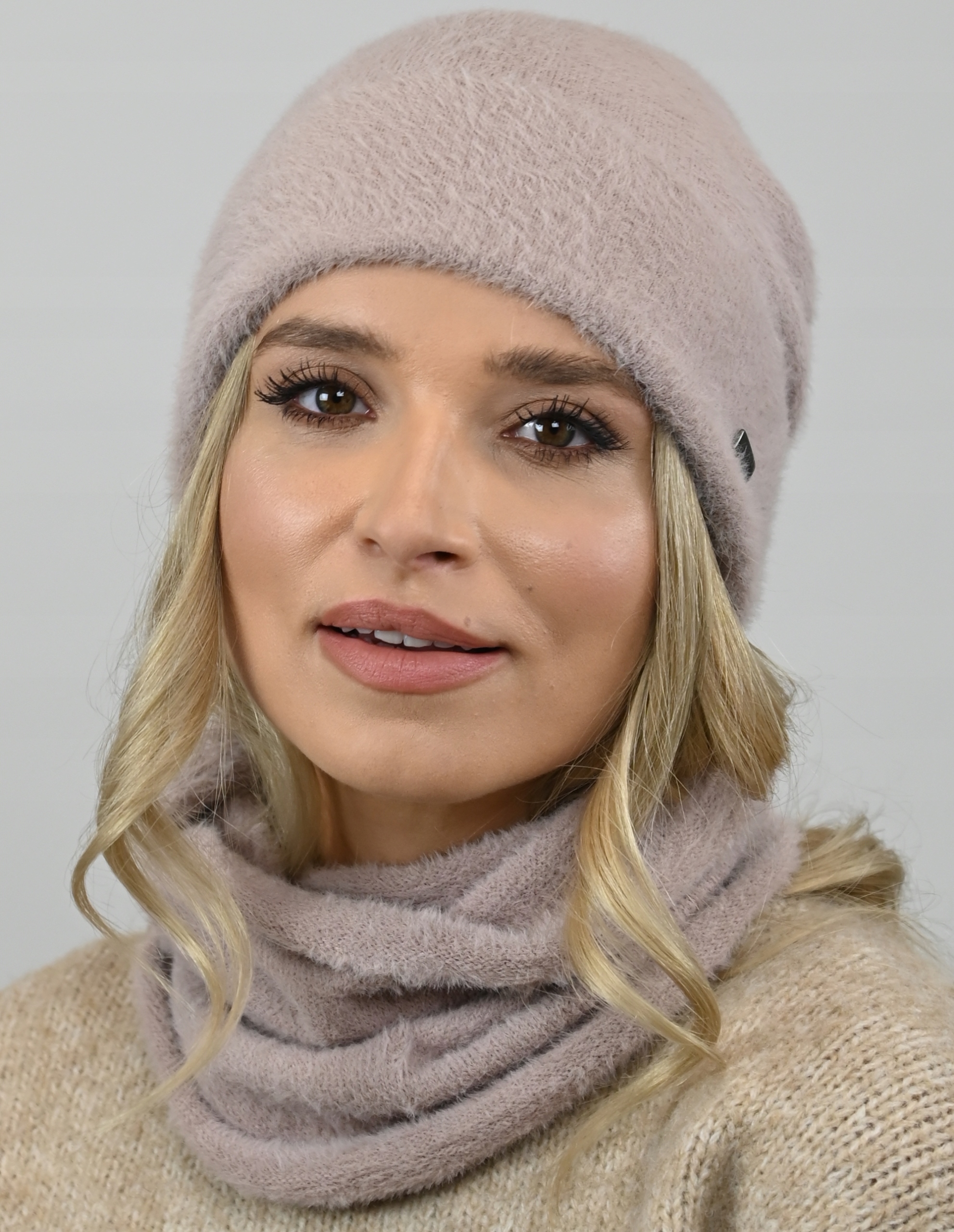 Гарний жіночий комплект з альпакою бежевий AL3