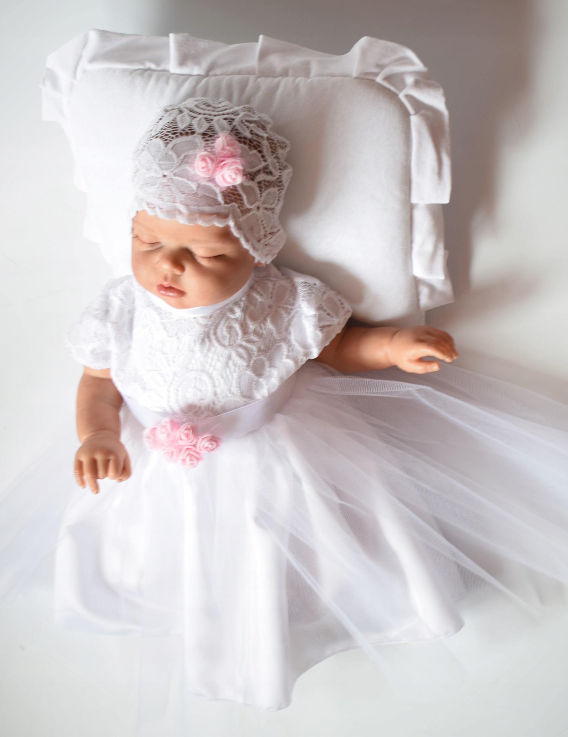 Красивый комплект крестильного костюма КРУЖЕВНОЕ 56/62