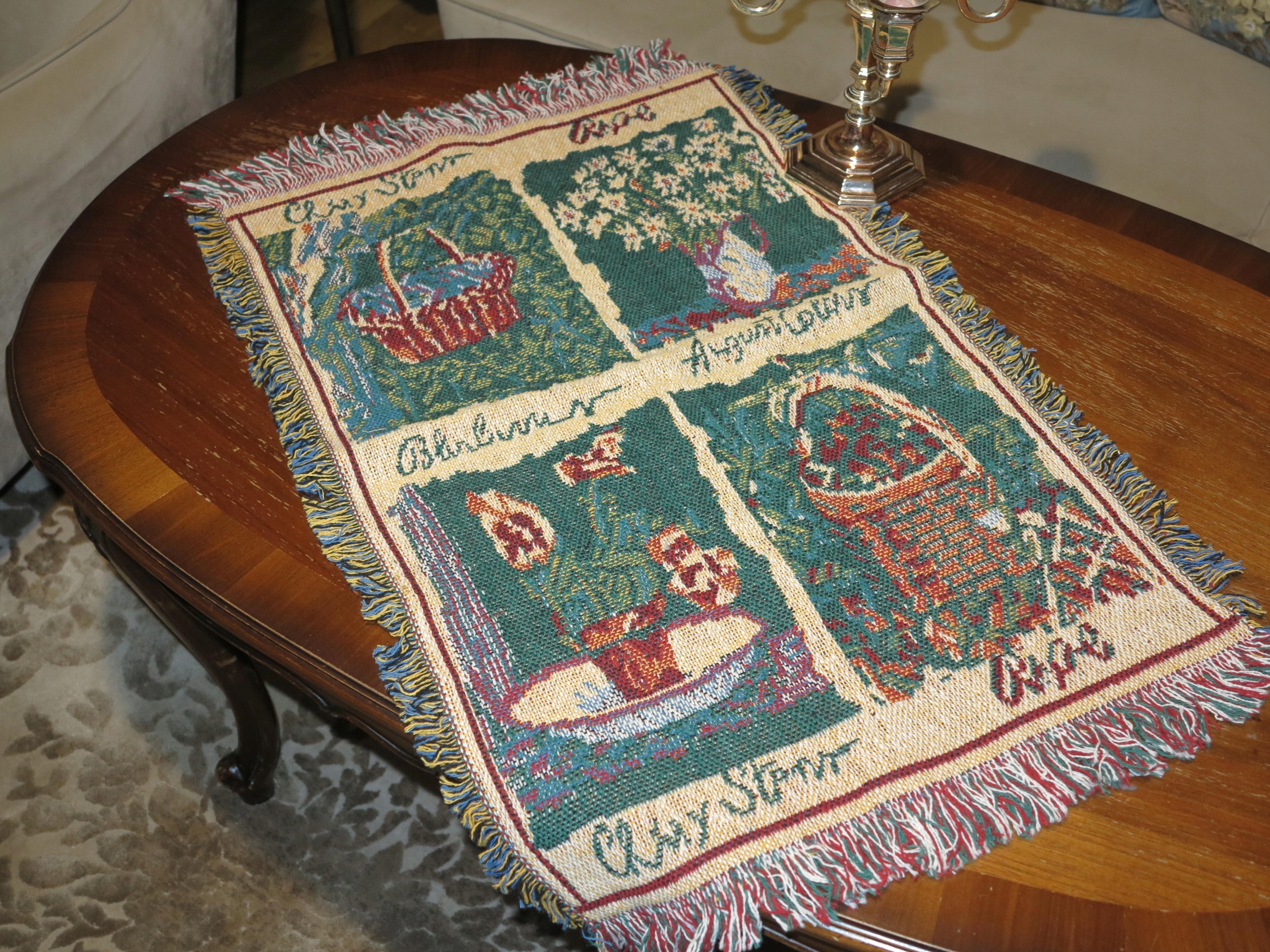 Предмет аукциона красивая хлопчатобумажная салфетка или настенный килим с цветами и корзинками. Б/у, но в очень хорошем состоянии и качестве.