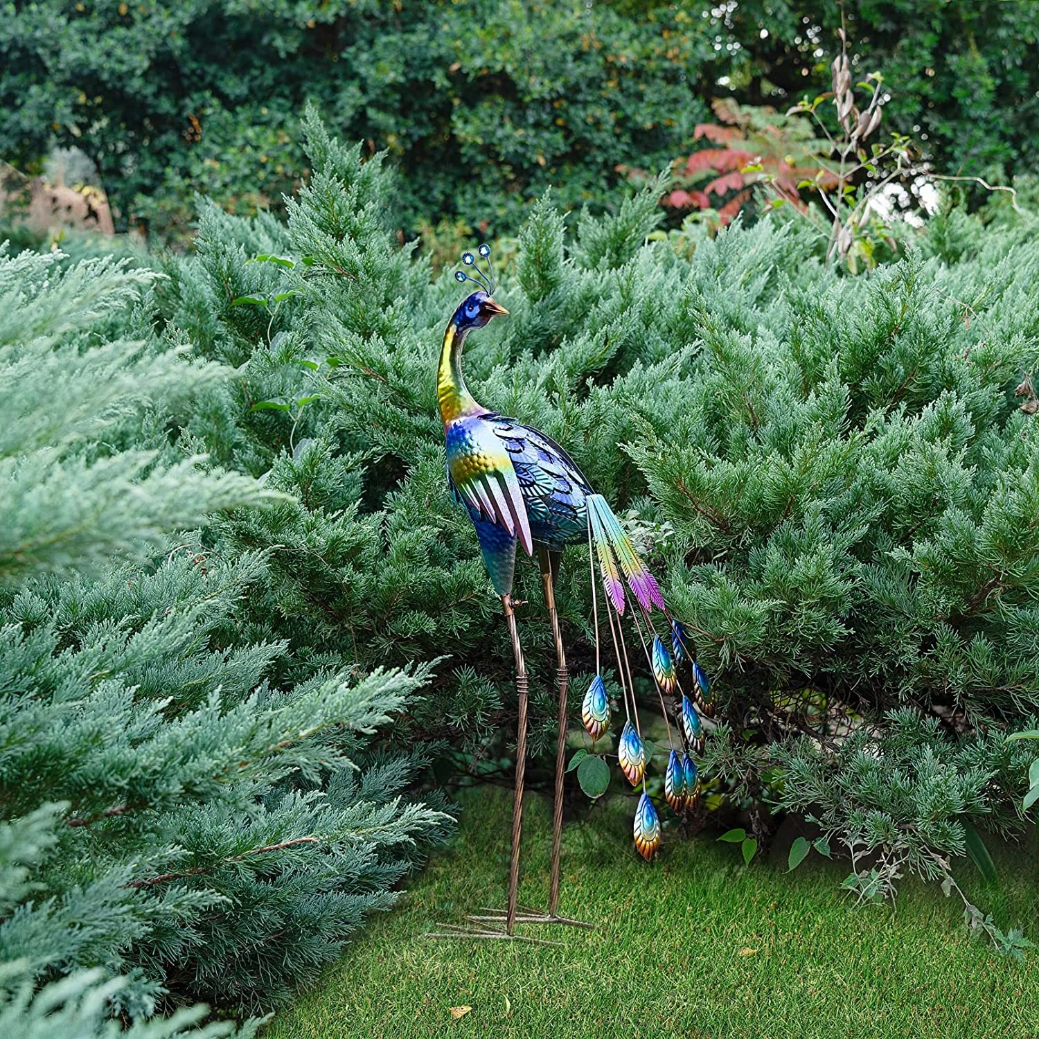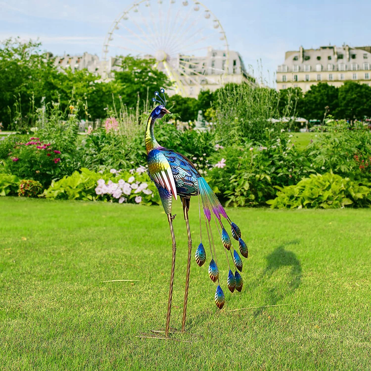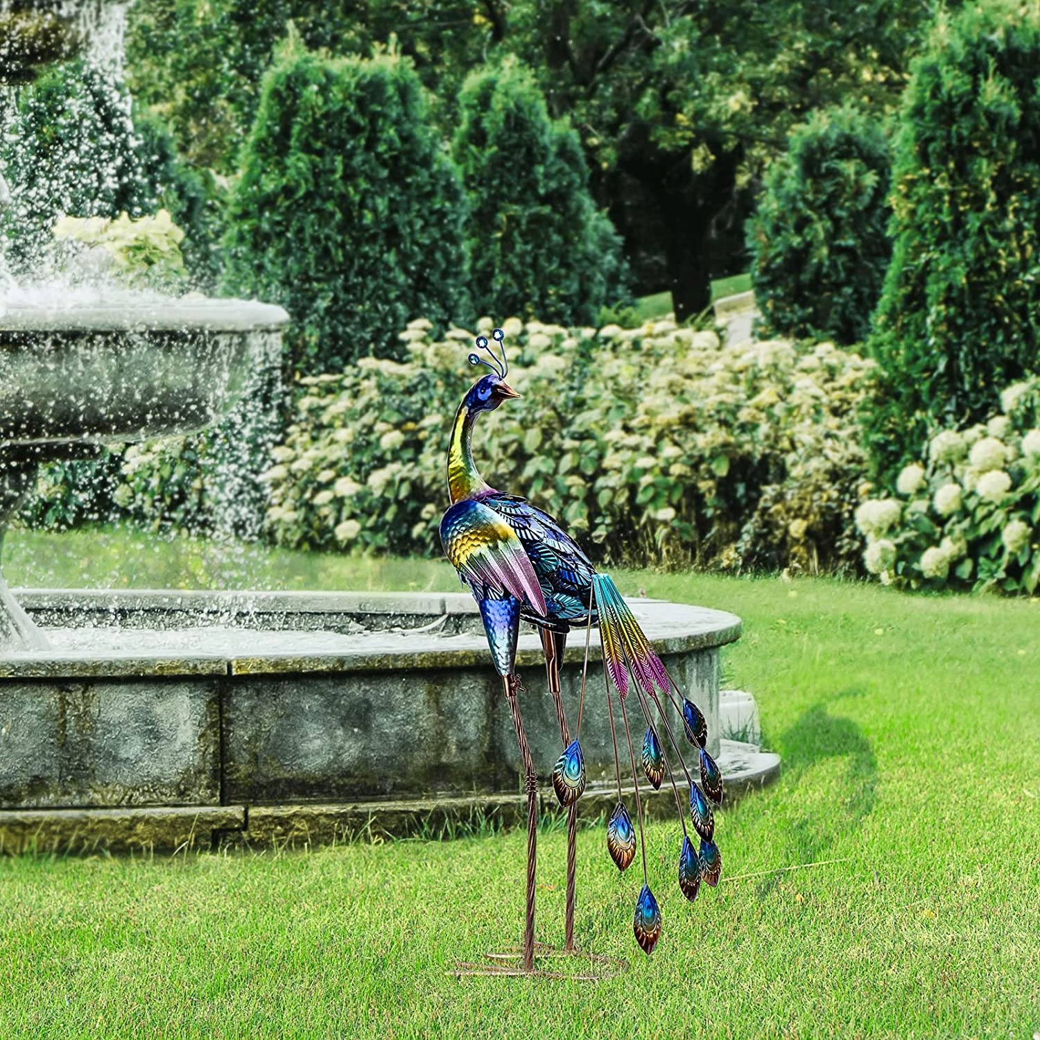 JelyArt 32-дюймовое металлическое украшение в виде садовой статуи павлина, большая стоячая металлическая железная садовая скульптура павлина, художественный декор в виде птиц для украшения сада во дворе, патио, лужайки.