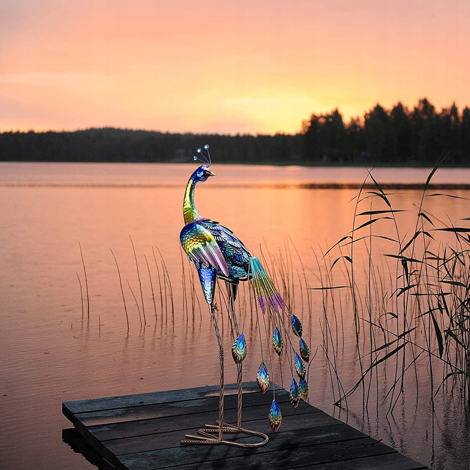 Статуи павлина】 Размер: общая длина 81 см/32 дюйма. Большие размеры подойдут для вашего сада, веранды или террасы. Красочный металлический павлин в классической стоячей позе привнесет в ваш сад элегантную и радостную атмосферу. 【Материал высокого качества】наша декоративная скульптура садовой птицы изготовлена из текстурированной металлической конструкции премиум-класса, прочной и прочной. Устойчив к ржавчине и погодным условиям, водонепроницаемый. Изысканные рельефные металлические перья делают павлина более ярким. 【Простая сборка】Для сборки не требуется инструмент. Просто соедините хвост с телом, тело с ногами. В комплект входит U-образный колышек, который стабилизирует лапы павлина на земле.