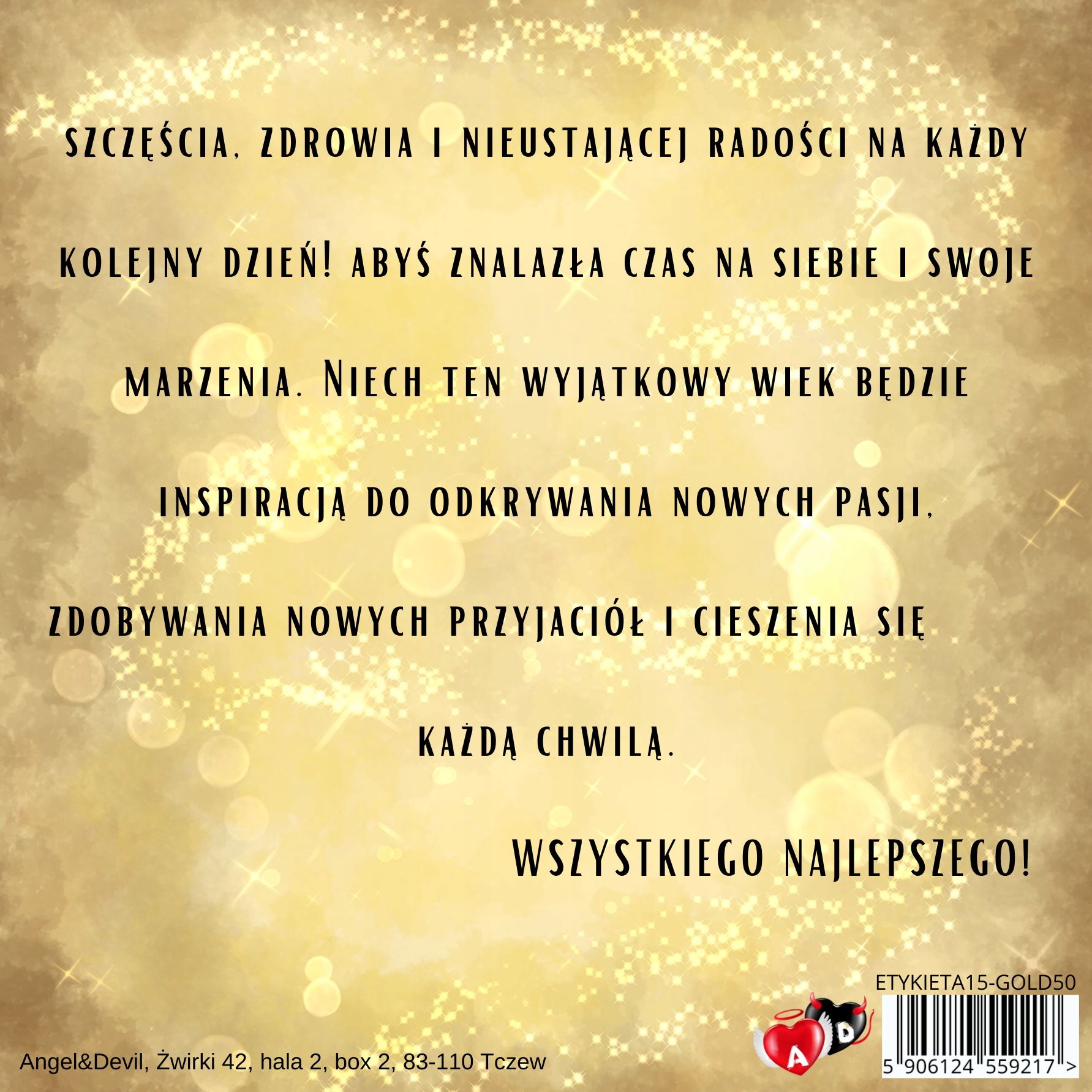 - "Счастья, здоровья и постоянной радости на каждый следующий день! Желаю вам найти время для себя и своих мечтаний. Пусть этот особенный возраст станет вдохновением для открытия новых увлечений, приобретения новых друзей и наслаждения каждым моментом. С днем рождения !».
