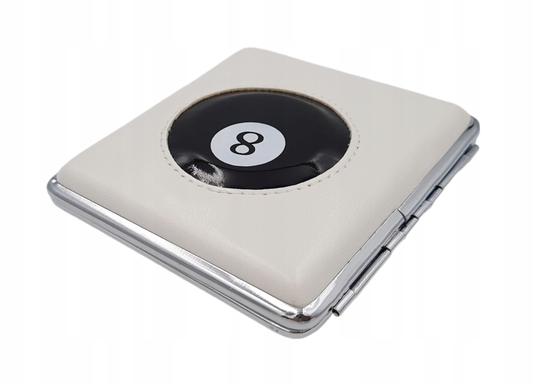 Предложение распространяется на портсигар, изображенный на фотографиях. Портсигар вмещает 20 сигарет. Он покрыт материалом, имитирующим кожу, с пластиковой имитацией спереди, напоминающей бильярдный шар. Он имеет резиновые ленты, которые удерживают сигареты на месте и не позволяют им разлетаться при переноске портсигара. Идеально подходит для подарка. Размеры портсигара 10х9,5х2,3 см.