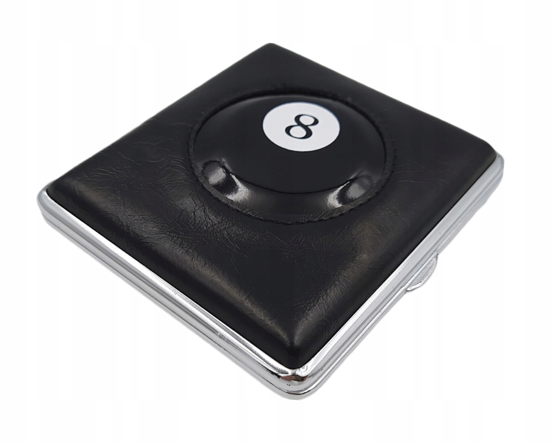 Предложение распространяется на портсигар, изображенный на фотографиях. Портсигар вмещает 20 сигарет. Он покрыт материалом, имитирующим кожу, с пластиковой имитацией спереди, напоминающей бильярдный шар. Он имеет резиновые ленты, которые удерживают сигареты на месте и не позволяют им разлетаться при переноске портсигара. Идеально подходит для подарка. Размеры портсигара 10х9,5х2,3 см.