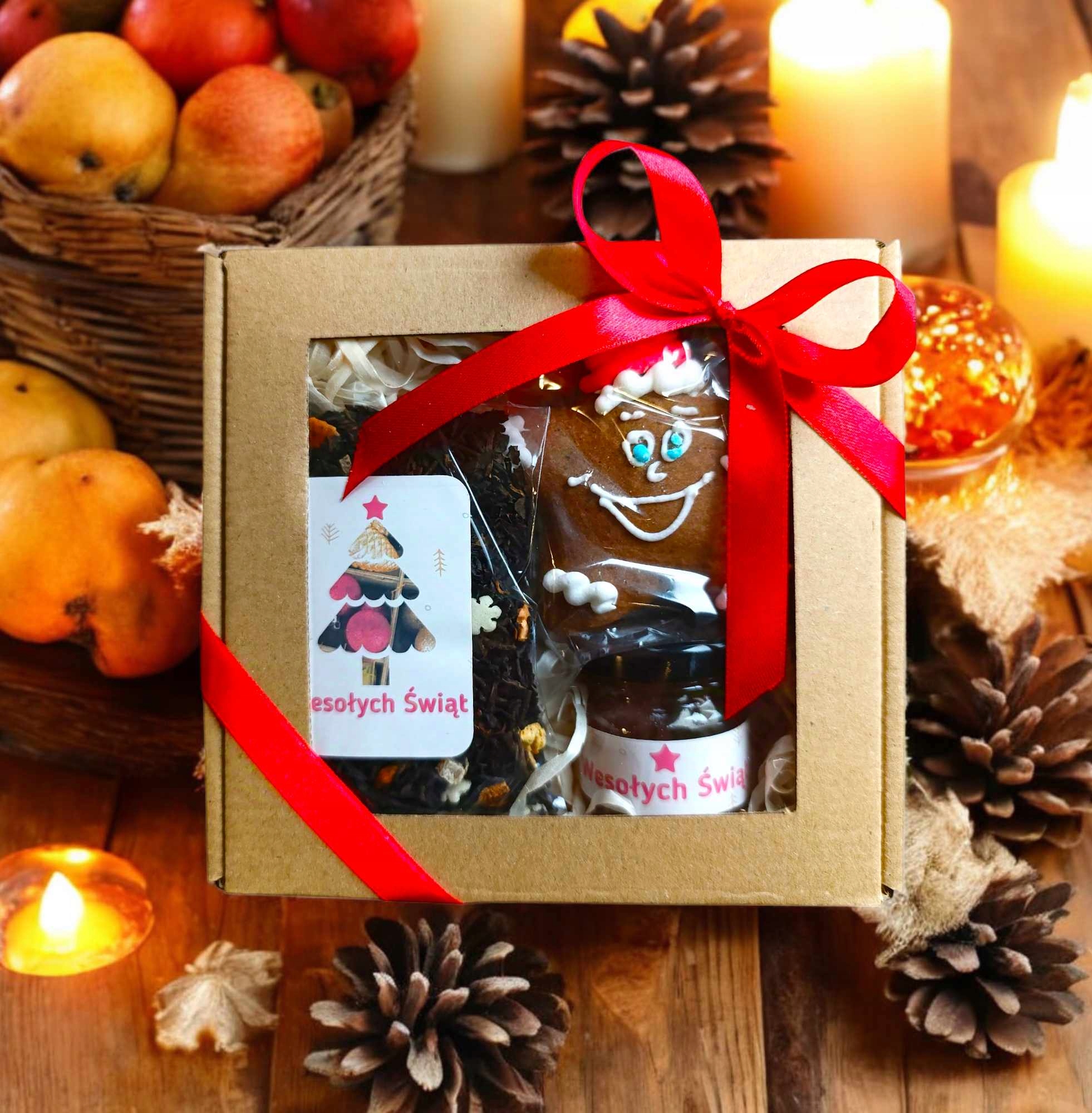 Гарний різдвяний подарунковий набір Чай Мед Пряник Зірка Діда Мороза