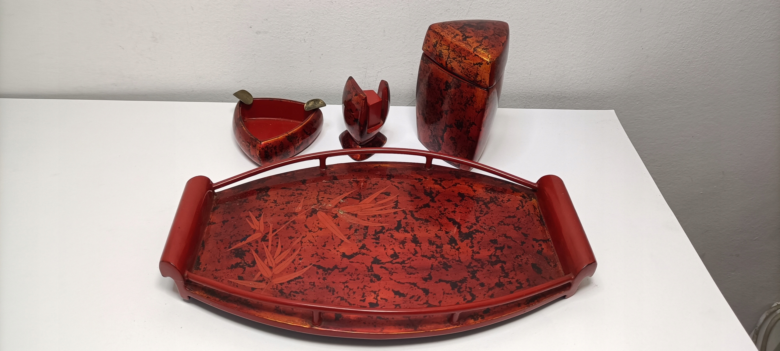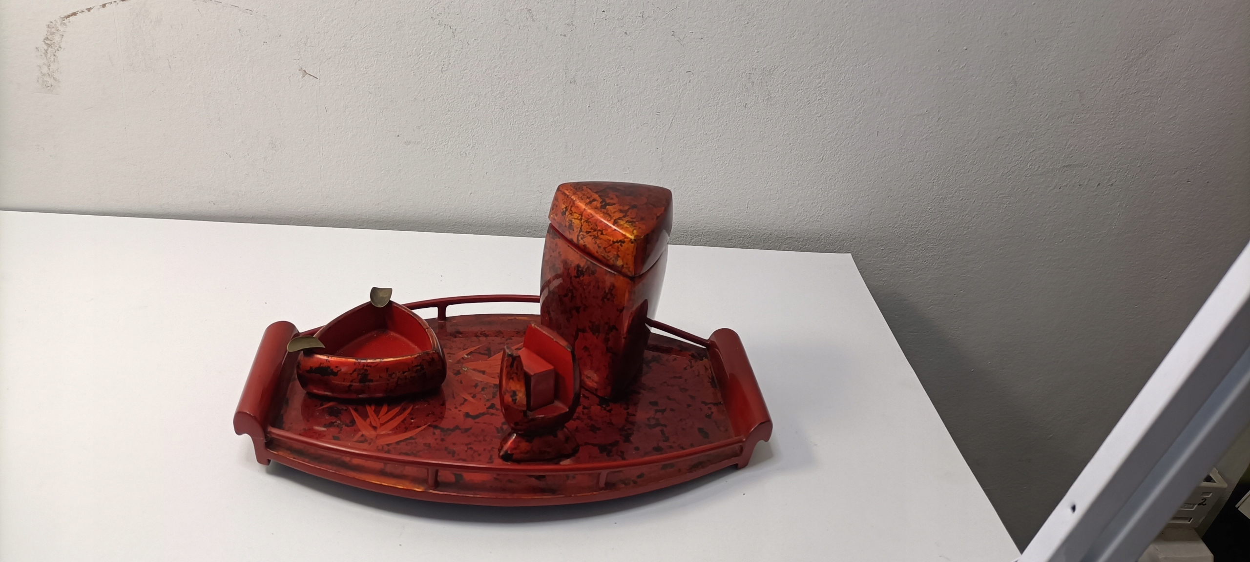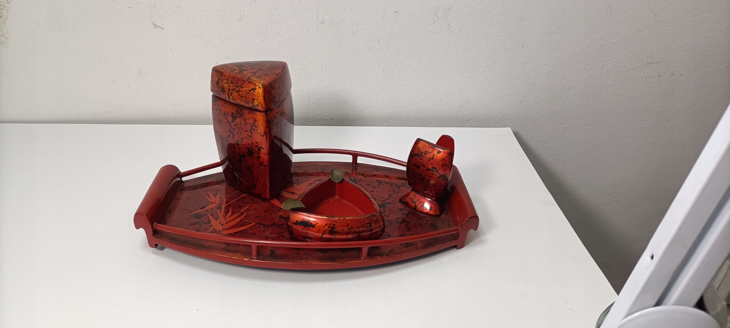 Гарний старовинний лакований офісний набір для курців від Chinka PRL з автографом