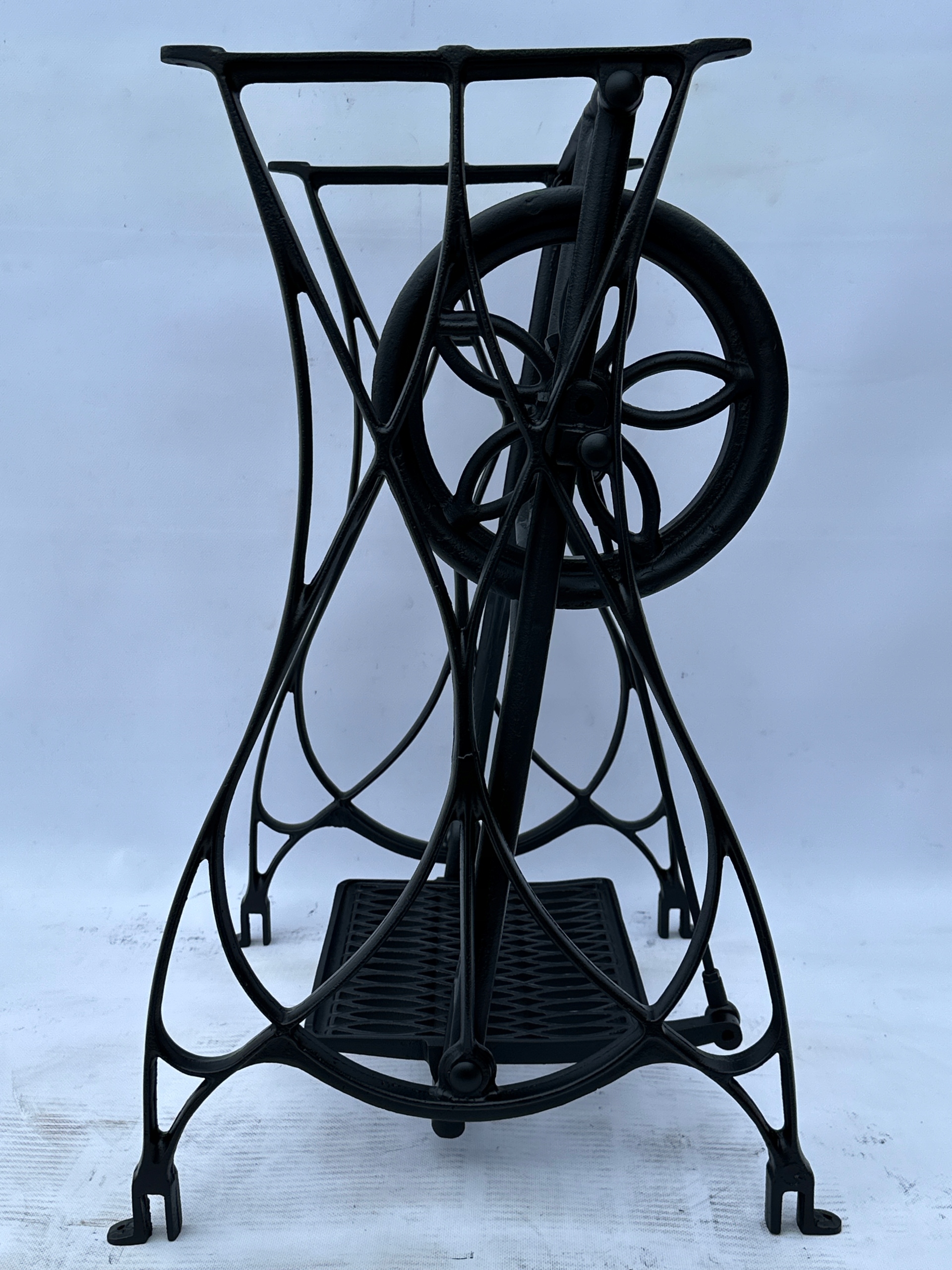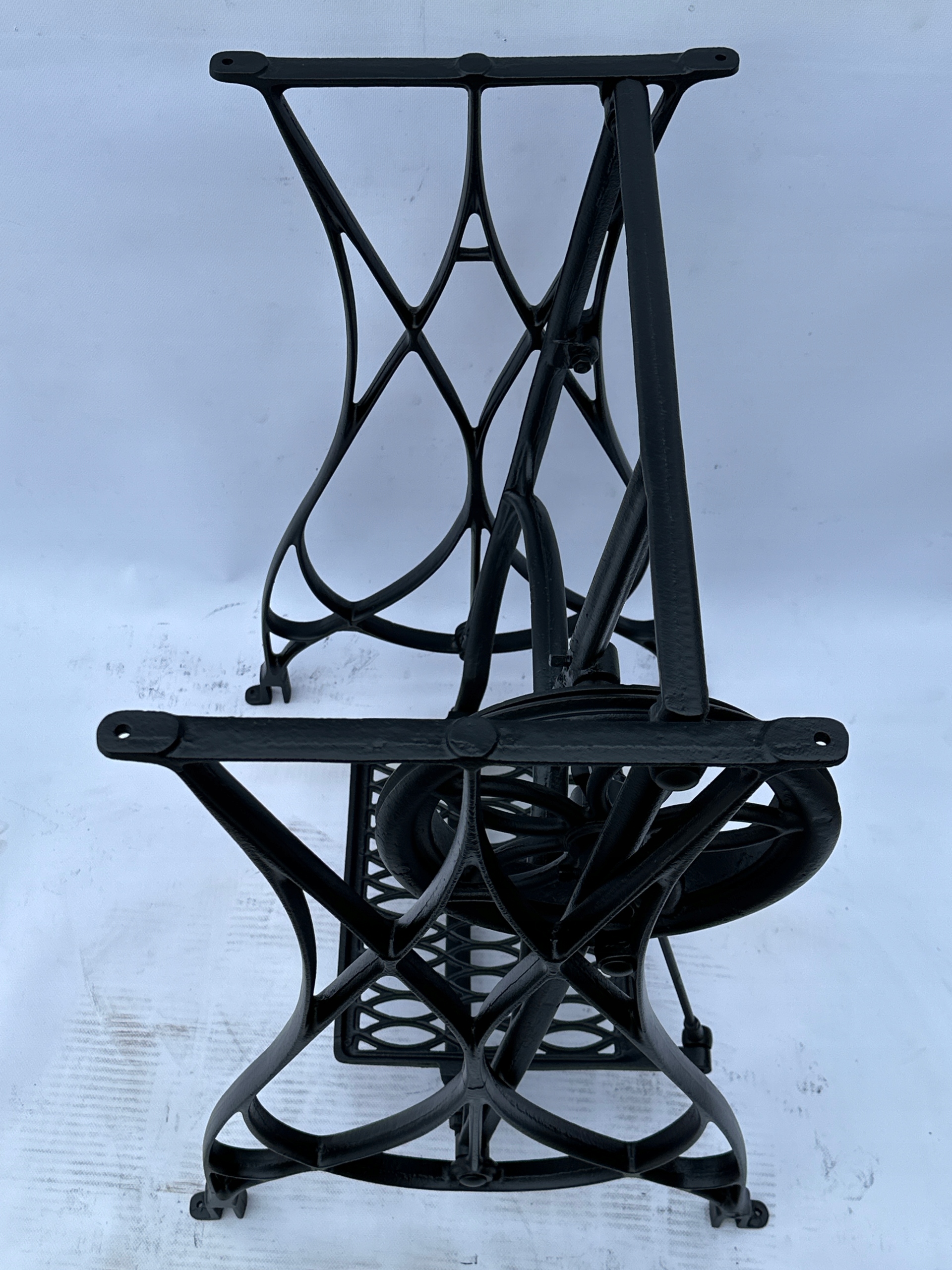 Предмет продажи — старая чугунная основа швейной машины. Очень красивый узор, встречается реже. Колеса внизу сняты, что делает стол более устойчивым и не будет двигаться. Основное колесо заблокировано, педаль хода не перемещается.