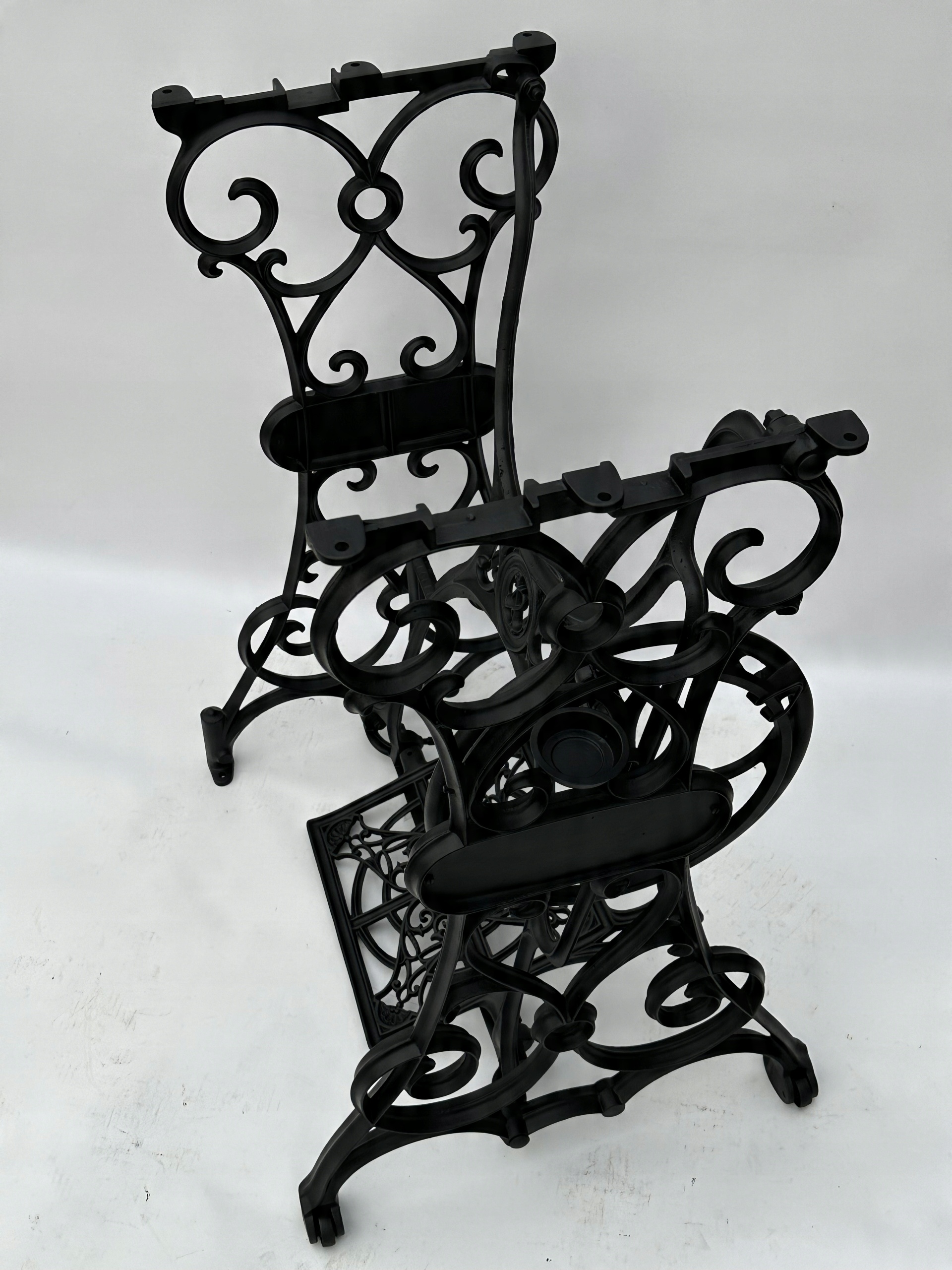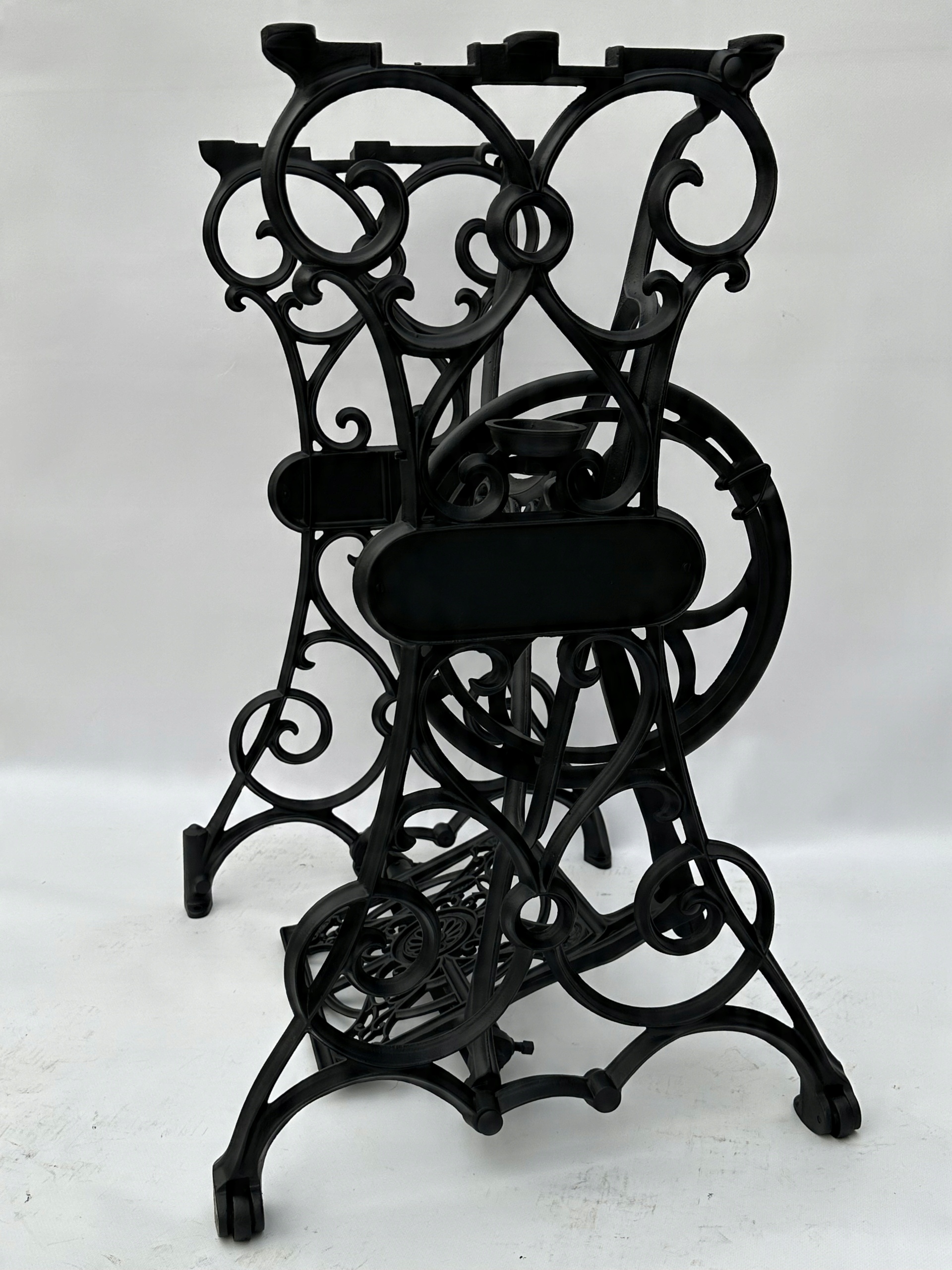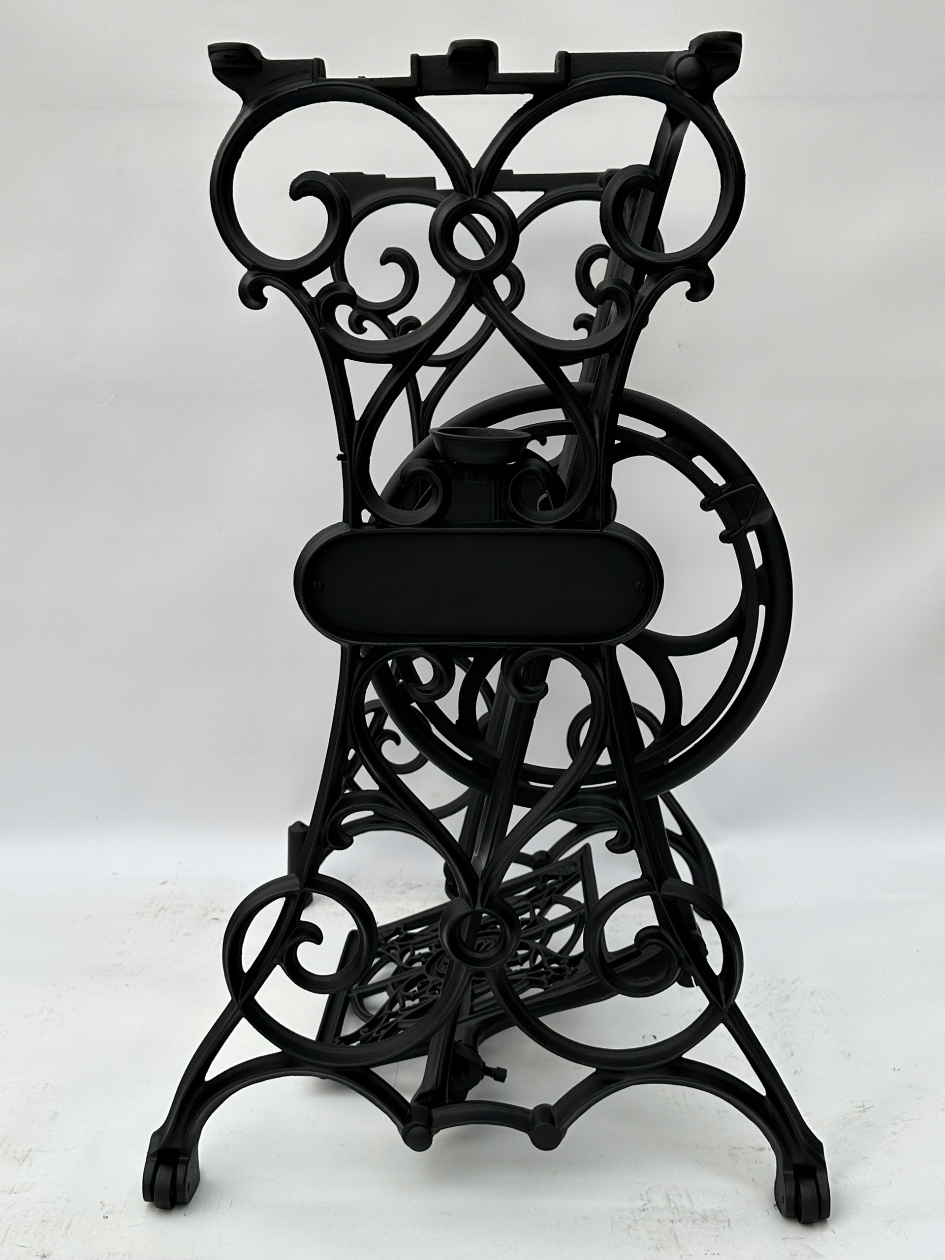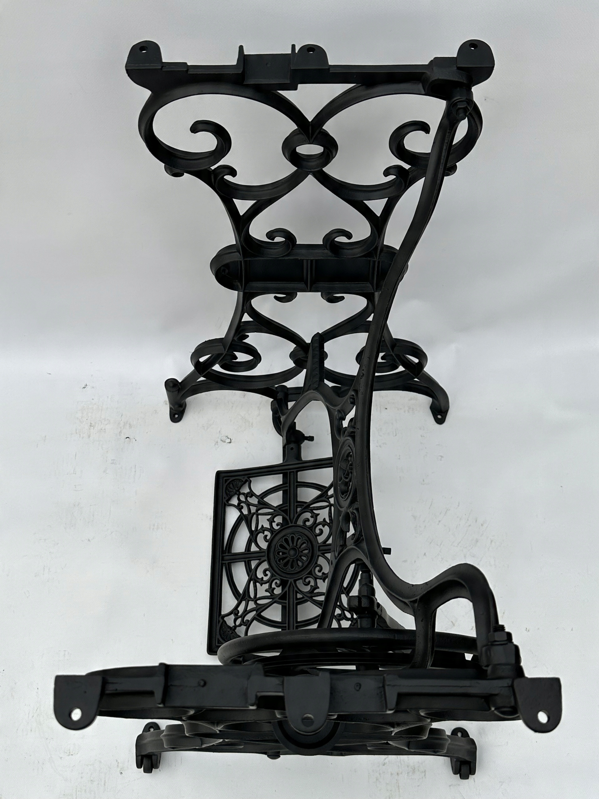 Предмет продажи — старая чугунная основа от швейной машины KOHLER. Очень красиво оформлен узор с якорем посередине. Менее распространен – единственный в своем роде на Аллегро. Найти стол с таким богатым декором становится все труднее. Оба колеса находятся внизу.