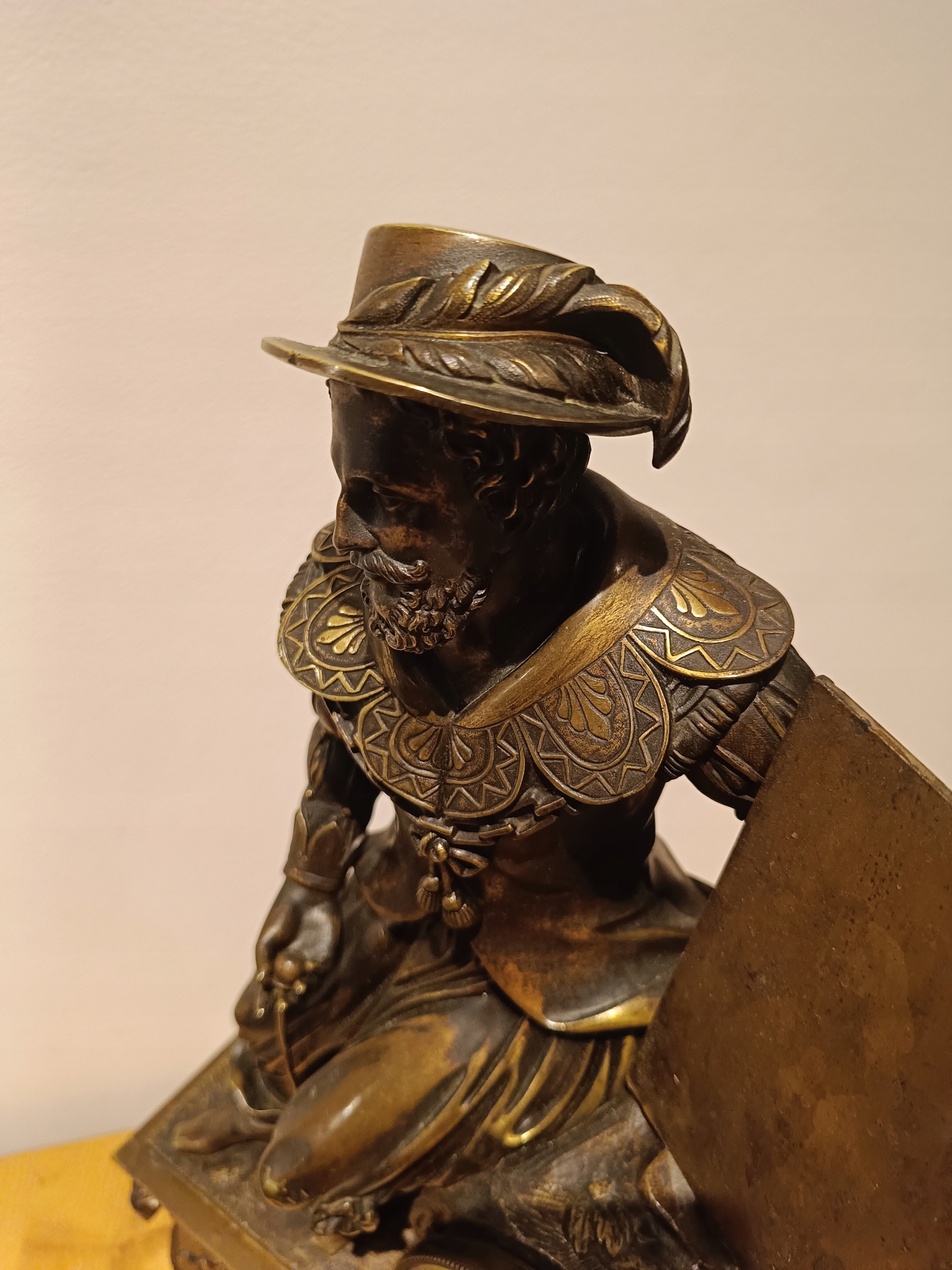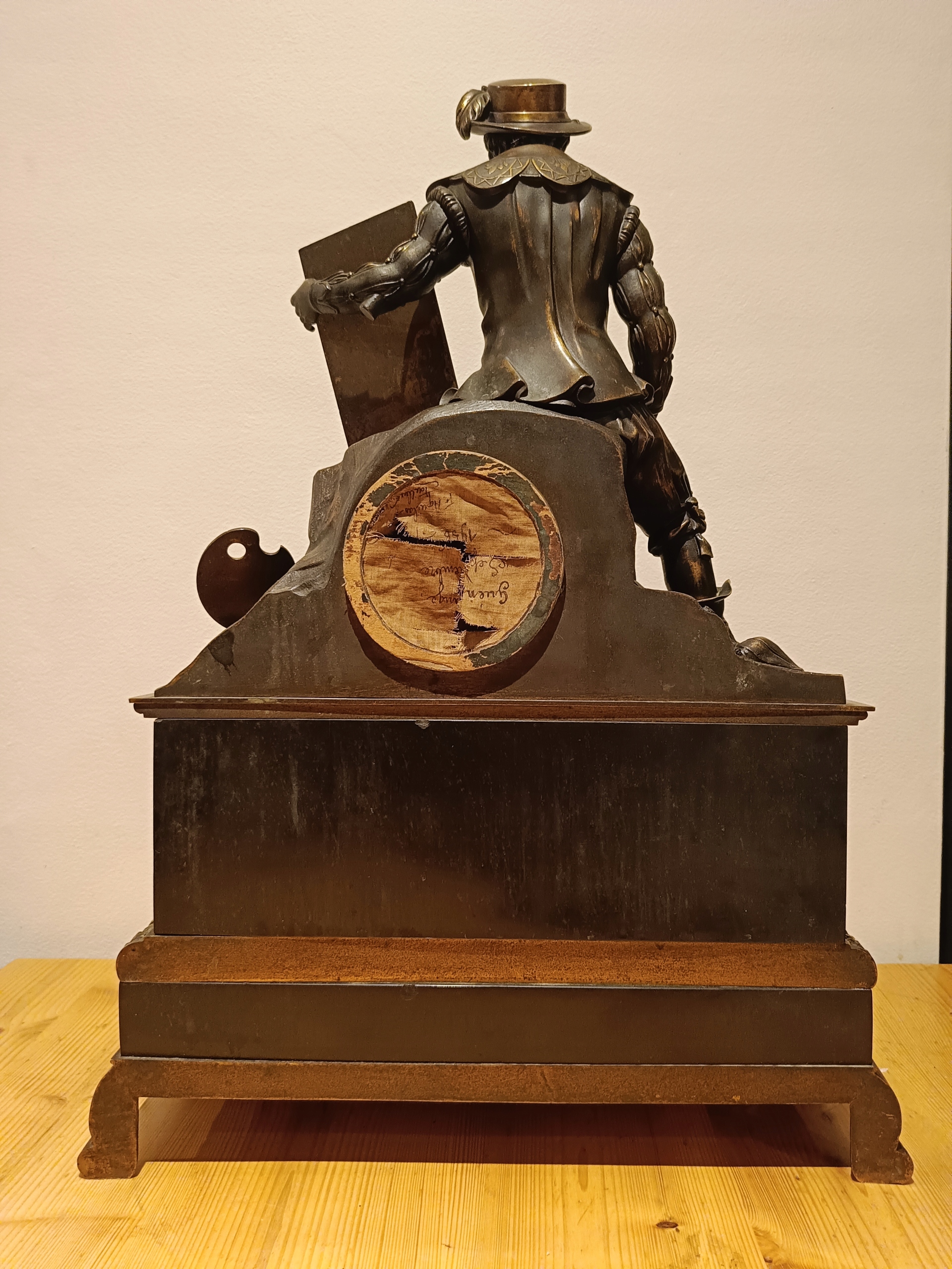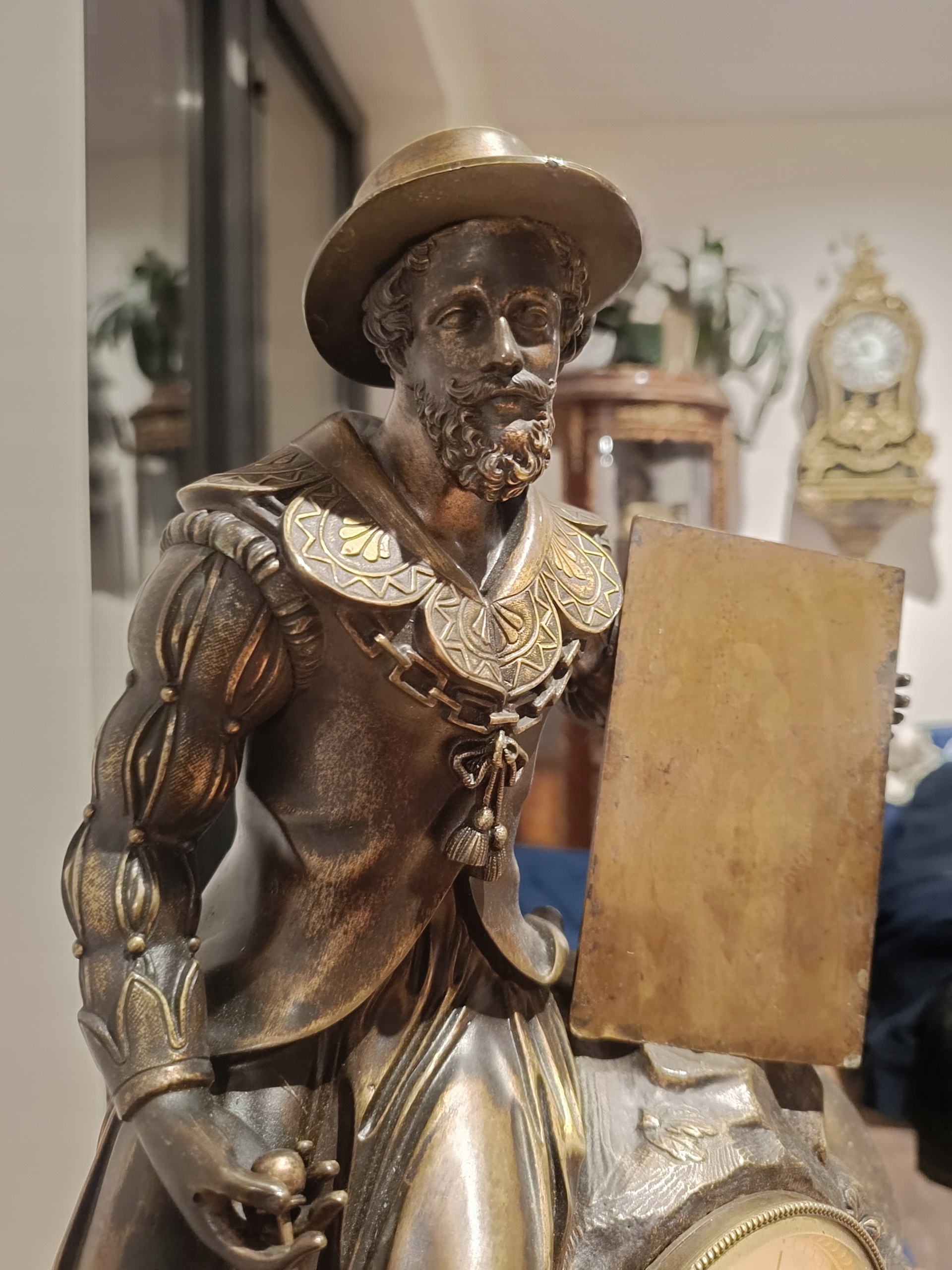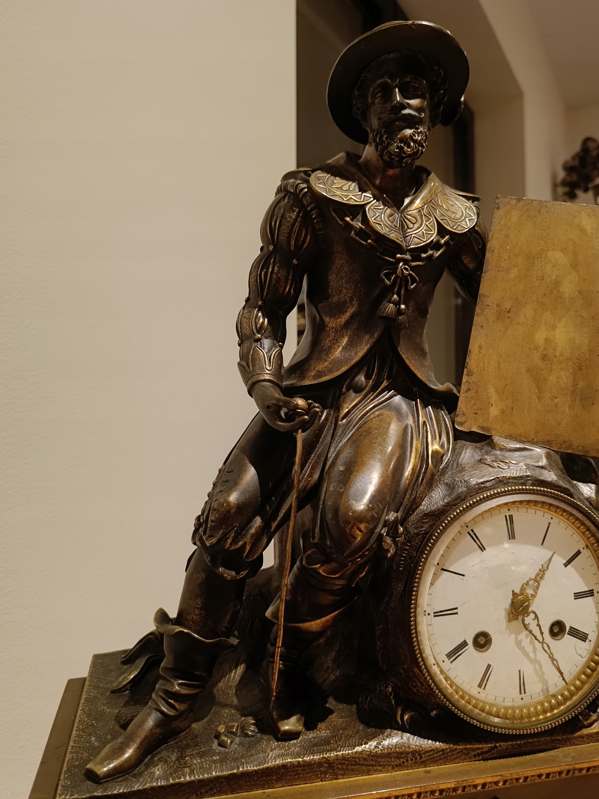 Часы выполнены из бронзы и мрамора. Механизм работает, в сборе и в очень хорошем состоянии, отбивает часы и полчаса. Фарфоровый циферблат механизма в очень хорошем состоянии - минимальный дефект в районе 5 часов. Маятник и ключ в комплекте.