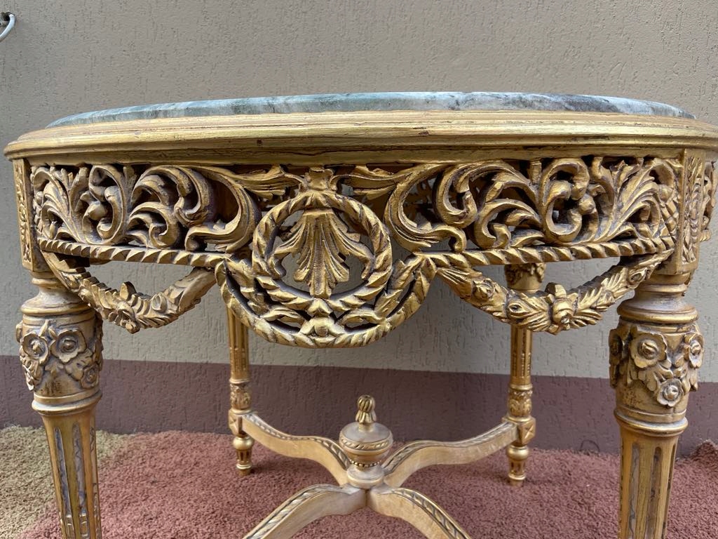 КРАСИВЫЙ ЗОЛОТОЙ СТОЛ С БОЛЬШОЙ РЕЗЬБОЙ С БОЛЬШОЙ МРАМОРНОЙ СТОЛЕШНИЦЕЙ