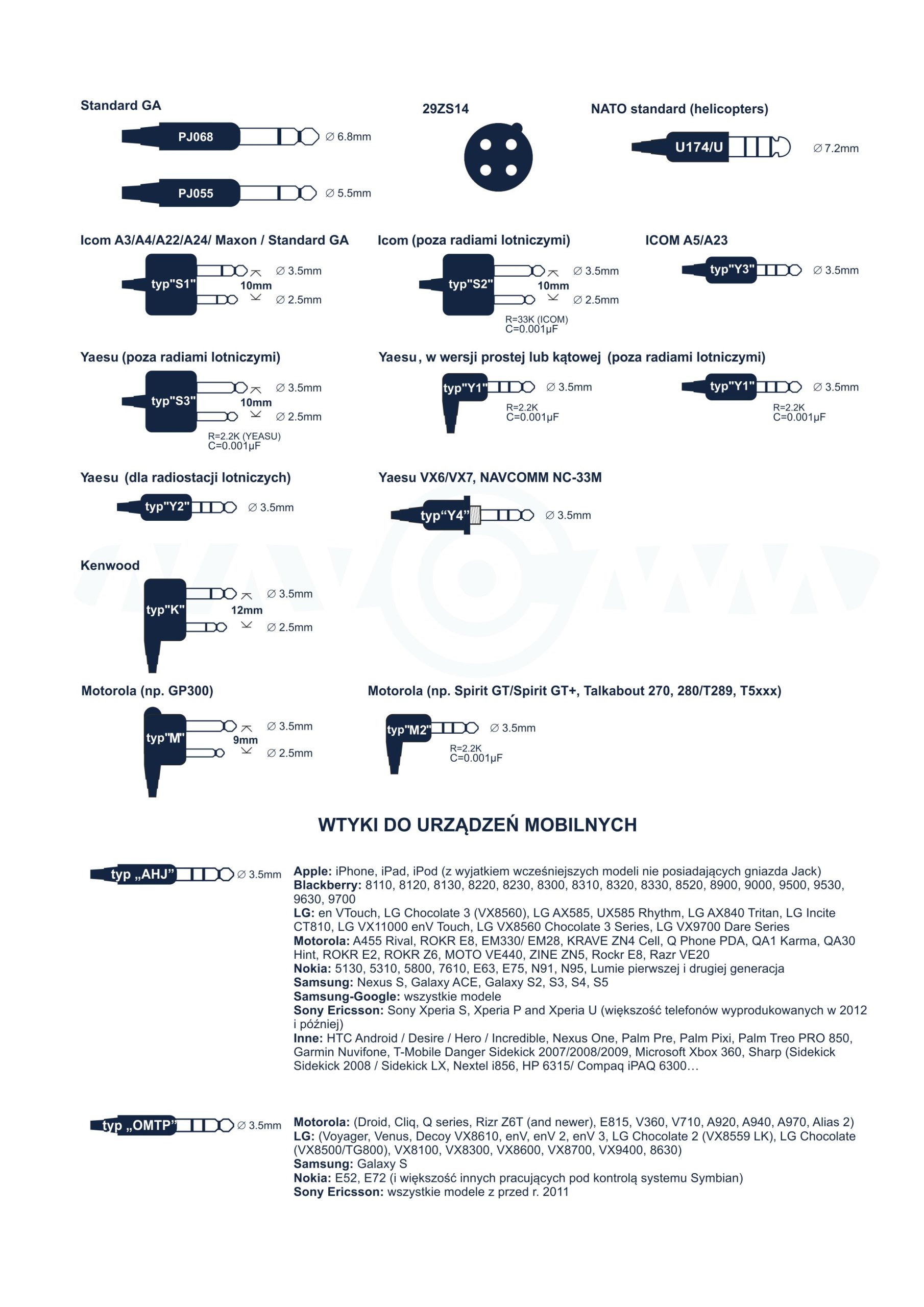 Изделие выпускается в нескольких модификациях, отличающихся типом разъема. Подробное описание предлагаемых нами заглушек содержится в файле: wtyki.pdf, а наличие индивидуальных решений указано в рамке внизу описания.