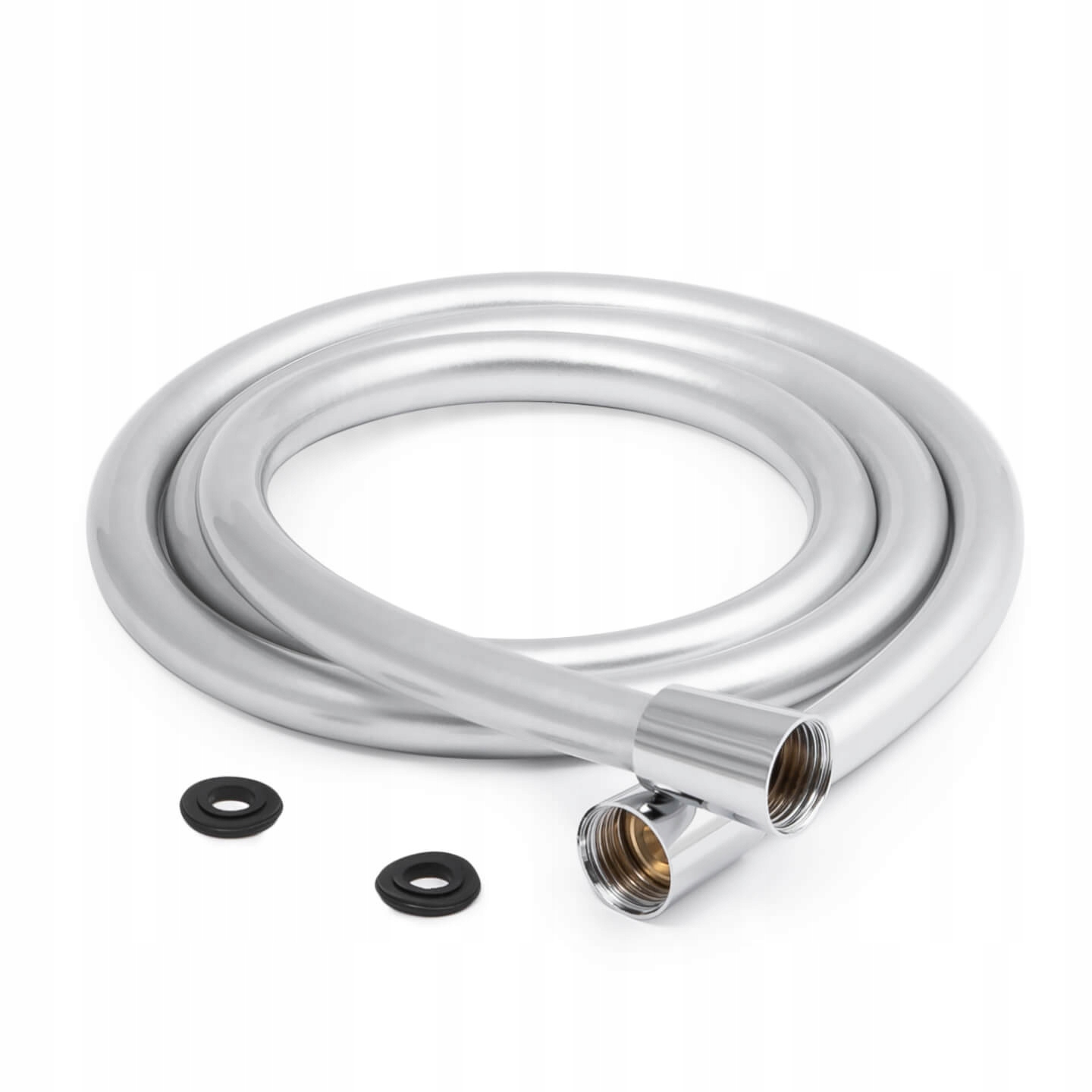Прочный резиновый шланг из ПВХ, длиной 150 см, серебристого цвета. Он идеально подходит к хромированным смесителям и наушникам, а его гладкая поверхность облегчает очистку. Резьба на обоих концах стандартного размера 1/2 дюйма. Кроме того, эта модель имеет один поворотный кончик, который предотвращает ее перекручивание и запутывание.