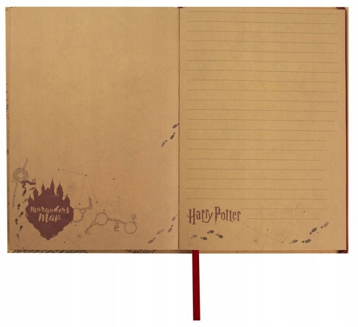 Блокнот с картами мародера из серии о Гарри Поттере станет отличным подарком для всех любителей Поттера, которые, помимо ведения записей, смогут внимательно проследить планировку отдельных комнат в Хогвартсе. Раскладная карта является реалистичной копией волшебного аксессуара и позволит вам почувствовать себя любимым волшебником. Блокнот имеет твердую обложку, стилизованные страницы и тематические принты. Формат блокнота А5.