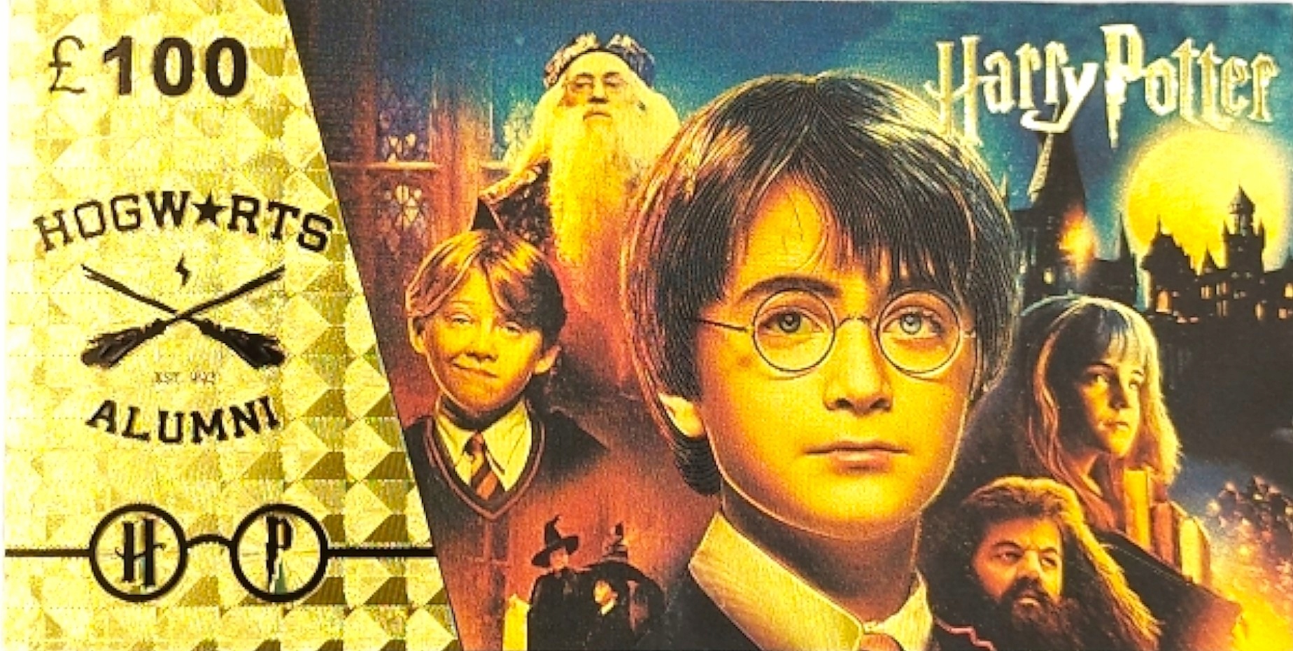 Гарри Поттер, позолоченная банкнота номиналом 100 фунтов