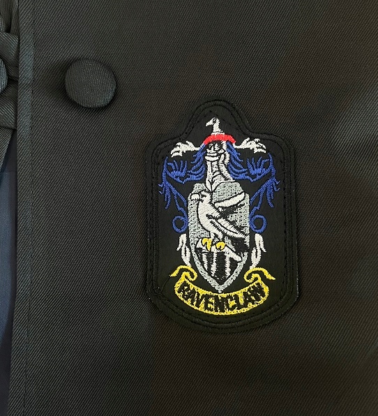 - На левой груди халата изображен герб Дома Рейвенкло, который является символом дома и его ценностей.
