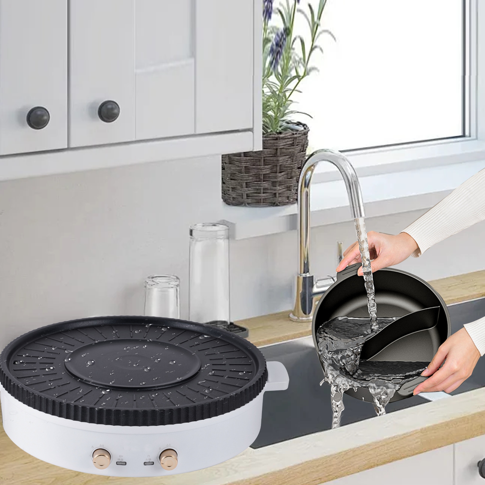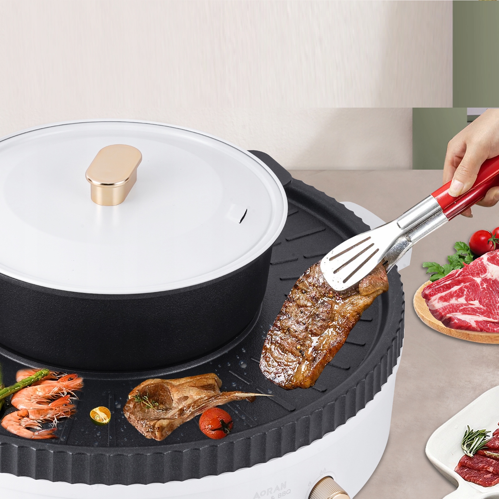 Горячий горшок для гриля использует неплохим сырье в сочетании с вогнутой конструкцией, чтобы уменьшить площадь контакта ингредиентов и представляет собой горшок с непрерывным покрытием для жарки и выпечки. Нагрев с высокой мощностью 2000 Вт с большой нагревательной поверхностью позволяет быстро наслаждаться вкусной пищей. Корректировка пожара разделена на два уровня: низкий и высокий, что может быть скорректировано в зависимости от ваших потребностей.