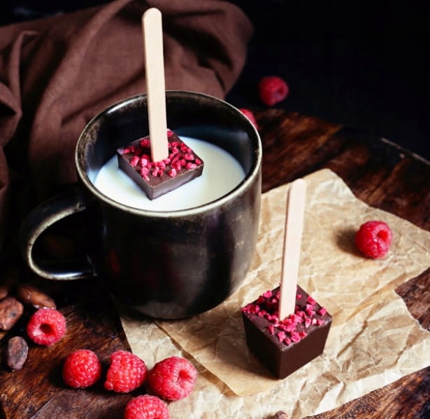 Горячий шоколад на палочке с сушеной малиной – идеальное сочетание классического шоколада с фруктовой ноткой, придающей освежающий, слегка кисловатый вкус. Такая чашка шоколада идеальна для холодных вечеров, когда хочется согреться вкусным напитком в компании или в тишине и покое.