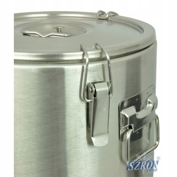 Термос из нержавеющей стали емкостью 36 литров, с двойными стенками с утеплителем и двойной крышкой с силиконовой прокладкой и вентиляционным отверстием. Термос имеет крышку, закрывающуюся на 3 прочные защелки.