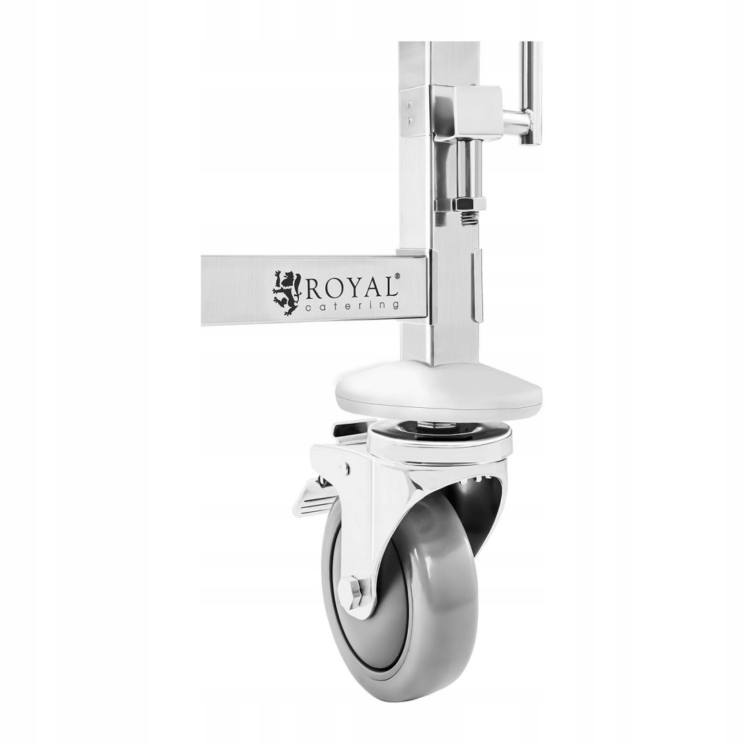 Имя производителя: rctw 6 GN 1/1 rctw 6 GN1/1 Королевская перевозка питания. Профессиональная коляда для общественного питания изготовлена из высококачественной нержавеющей стали, она устойчива к коррозии, а также механическое повреждение . Гастрономическая тележка характеризуется Easy Cleaning (открытая структура) и безопасная операция (вертикальный замок спереди и сзади). Верхняя вершина была помещена на высоте 95 см, из -под нее оборудована усиливающей полосой, а также звукоизоляционным ковриком. Верх может быть использован в качестве полки или рабочей поверхности . Транспортная тележка оснащена резиновыми колесами, которые вращаются на 360 °. Особенности и функции: - Статья стальная конструкция - верхняя верхняя часть, усиленная полосой и звукоизолированным с помощью коврика - сделано из нержавеющей стали - вертикальные транспортные замки - Четыре резиновых колеса - Простая сборка - Легкая чистка и обслуживание Технические параметры:
