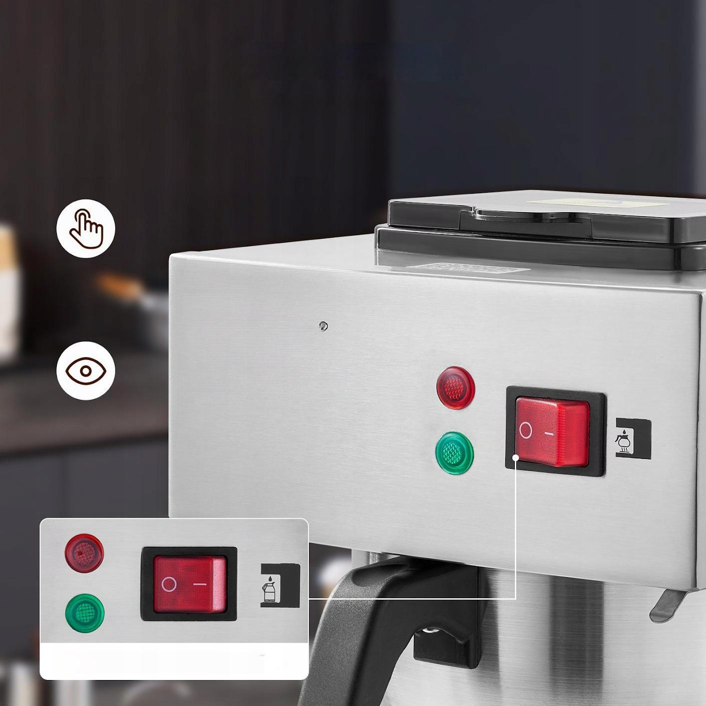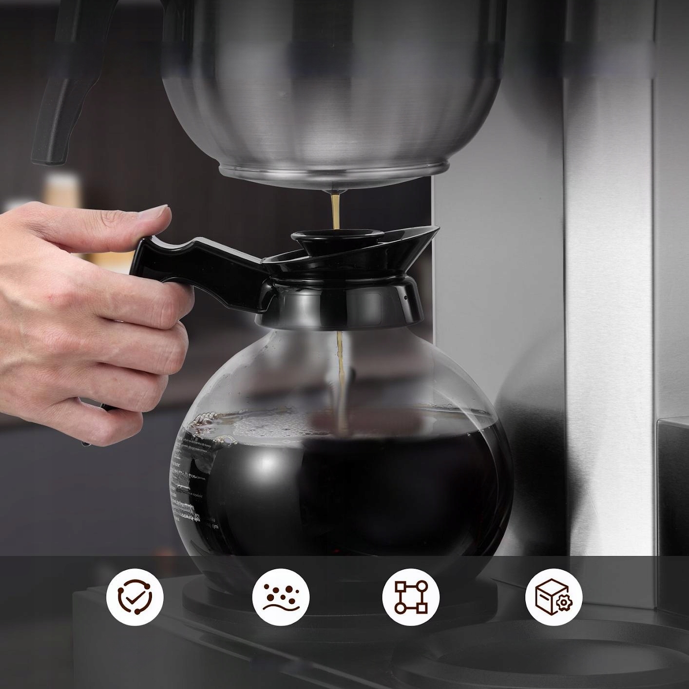 Благодаря ключевым элементам управления, кофейное пивоварение становится простым, с четким видом на работу.