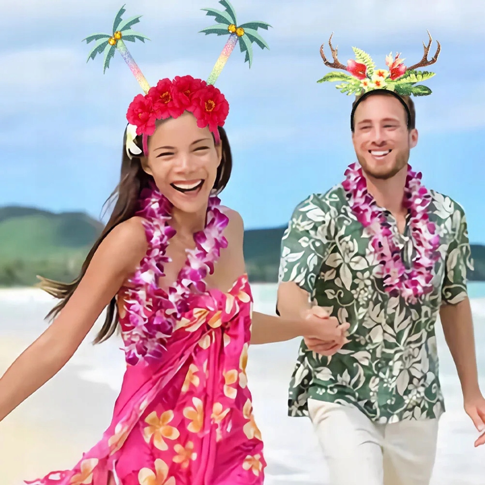Повязка на голову с гавайскими элементами подойдет для гавайской вечеринки, идеальное фото