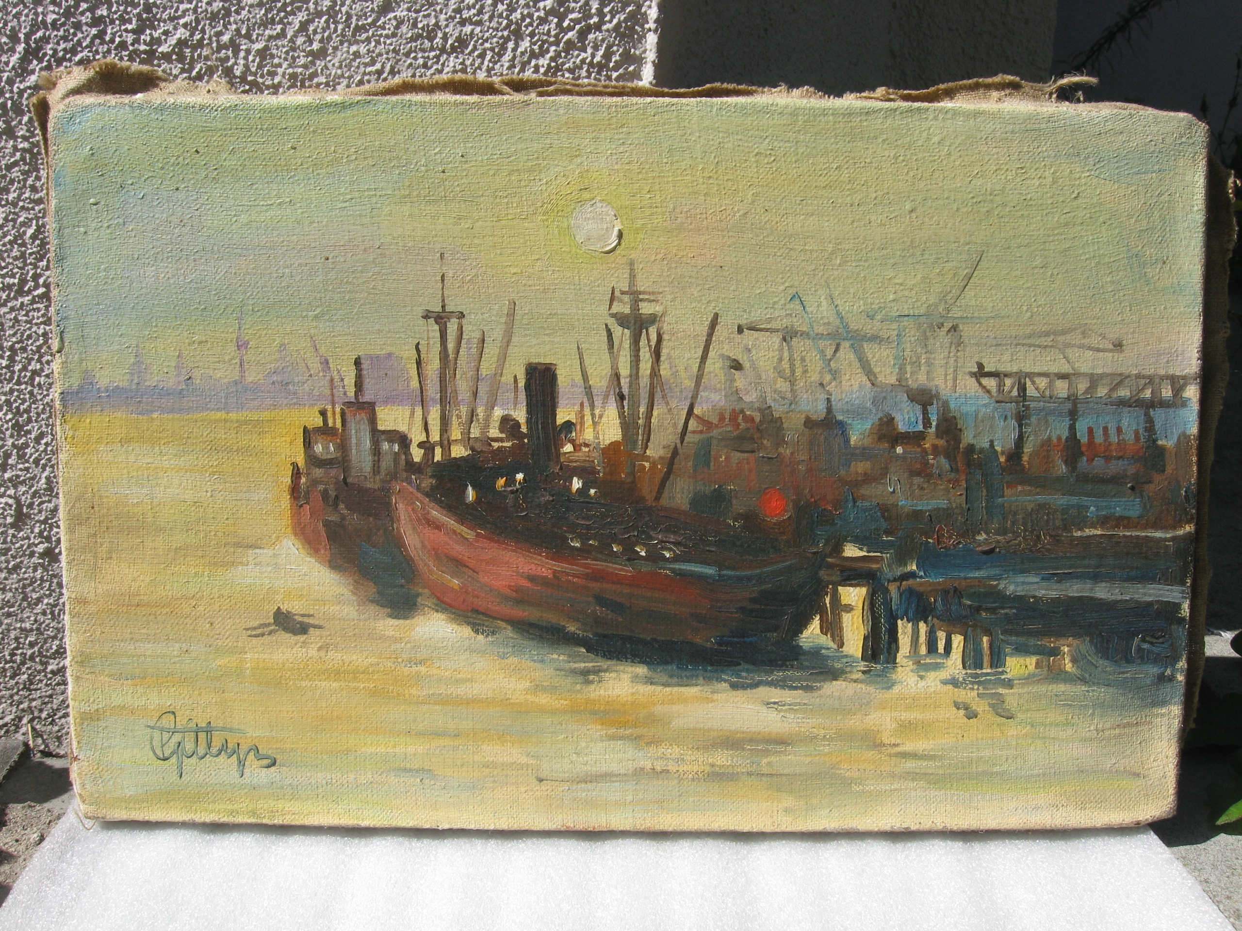 Gałysze Teodor Stocznia в масле chzzecin на холсте подписано